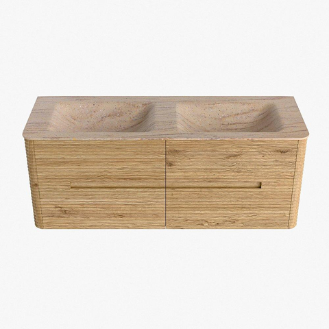 Mondiaz CIRO-DLUX Badkamermeubelset - 130x45x50cm - Solid surface wastafel Saba - 2 wasbak Dubbel - zonder kraangaten - 4 lades - Oak