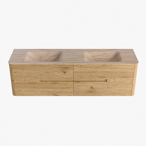 Mondiaz CIRO-DLUX Badkamermeubelset - 170x45x50cm - Solid surface wastafel Saba - 2 wasbak Dubbel - zonder kraangaten - 4 lades - Oak