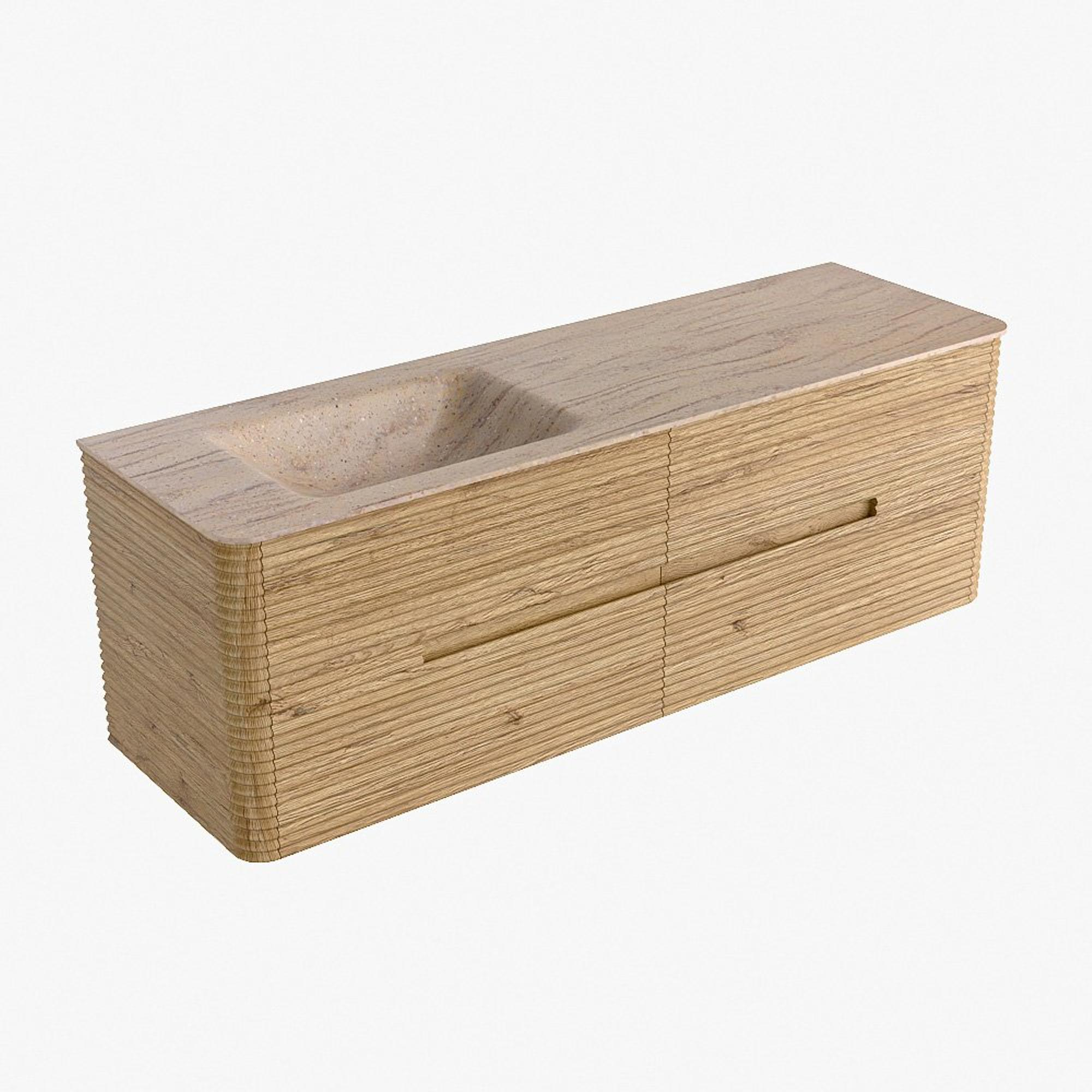 Mondiaz CIRO-DLUX Badkamermeubelset - 150x45x50cm - Solid surface wastafel Saba - 1 wasbak Links - 1 kraangat - 4 lades - Oak