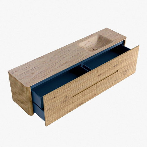 Mondiaz CIRO-DLUX Badkamermeubelset - 190x45x50cm - Solid surface wastafel Saba - 1 wasbak Rechts - 1 kraangat - 4 lades - Oak