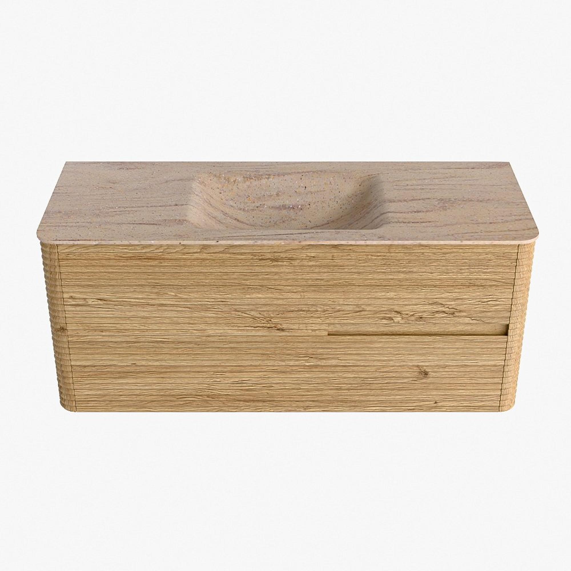 Mondiaz CIRO-DLUX Badkamermeubelset - 120x45x50cm - Solid surface wastafel Saba - 1 wasbak Midden - 1 kraangat - 2 lades - Oak