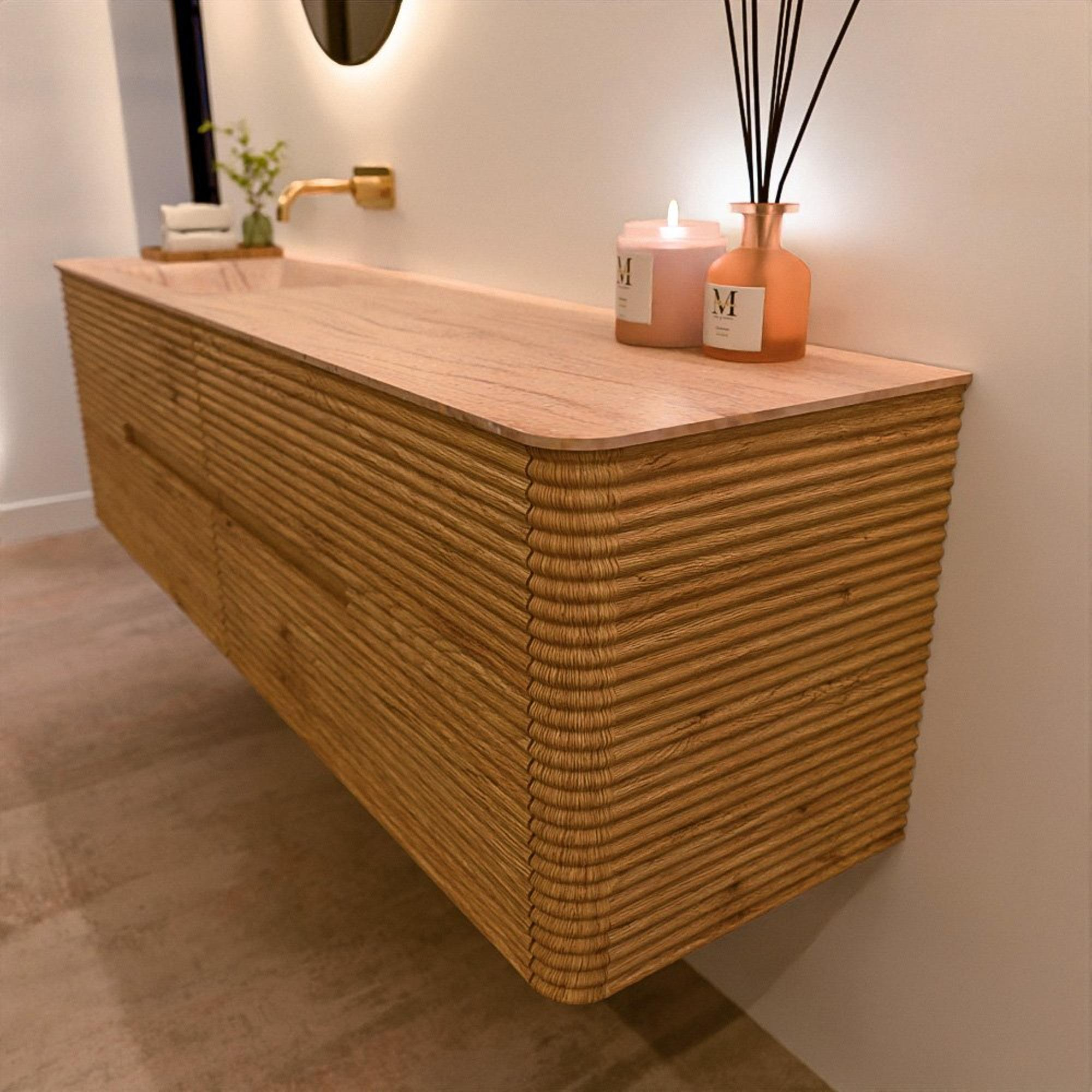 Het CIRO-DLUX badkamermeubel is ontwikkeld voor wie kiest voor modern design, natuurlijke materialen en hoogwaardige functionaliteit. Met maatvoeringen van 70 cm tot 190 cm past de CIRO-serie moeiteloos in zowel compacte badkamers als royale designruimtes. Elk meubel is een uitgebalanceerde combinatie van esthetiek, ambacht en duurzame kwaliteit.