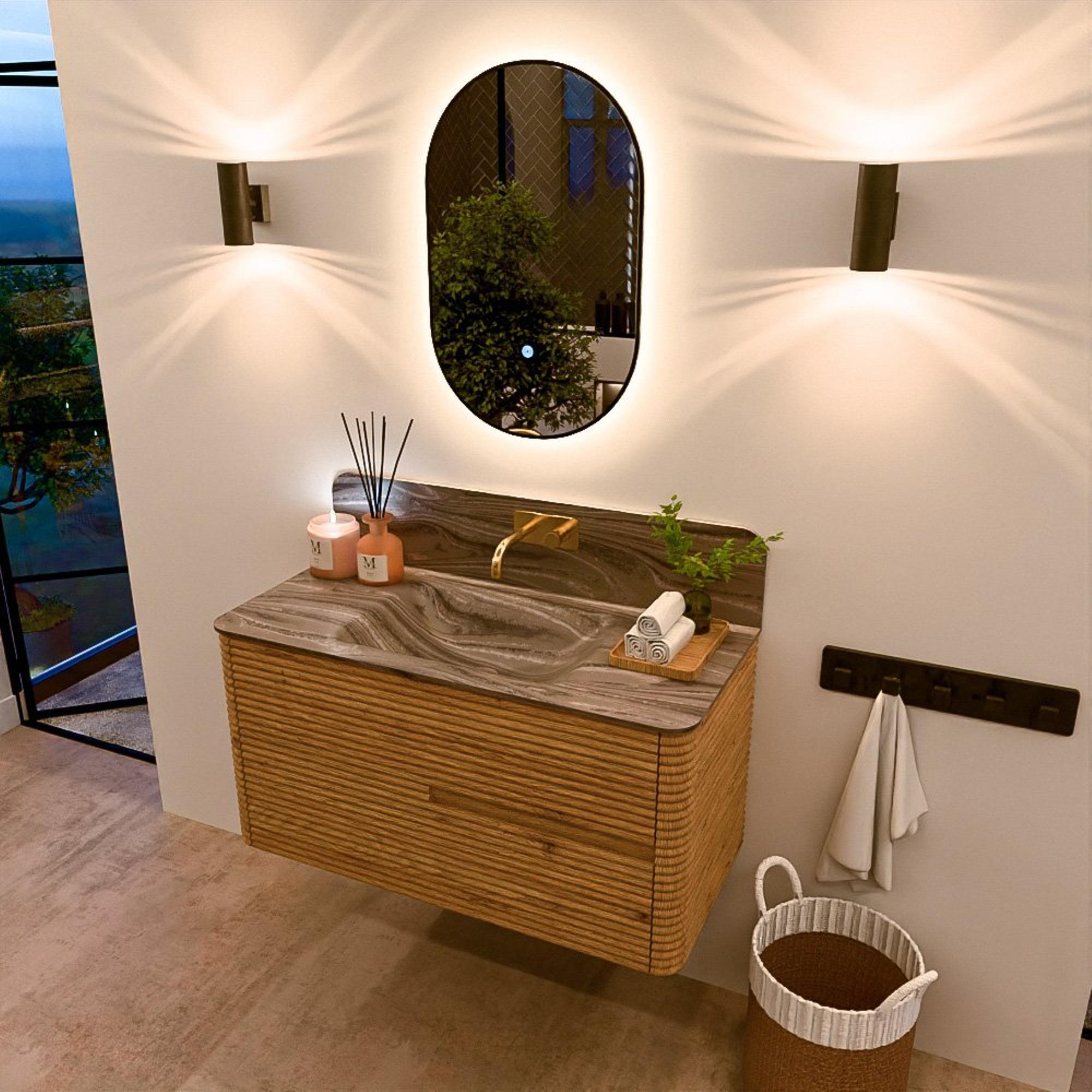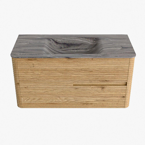 Mondiaz CIRO-DLUX Badkamermeubelset - 100x45x50cm - Solid surface wastafel Sombra - 1 wasbak Midden - zonder kraangaten - 2 lades - Oak