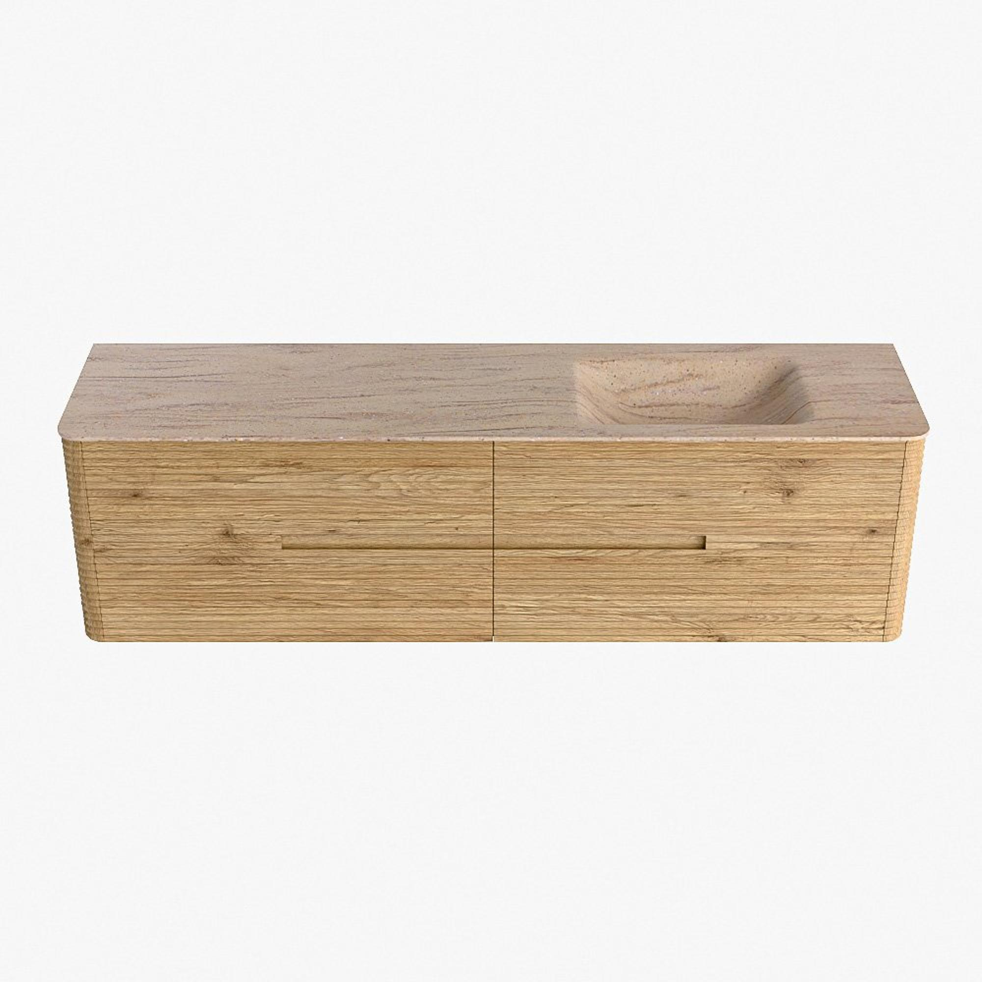Mondiaz CIRO-DLUX Badkamermeubelset - 180x45x50cm - Solid surface wastafel Saba - 1 wasbak Rechts - 1 kraangat - 4 lades - Oak
