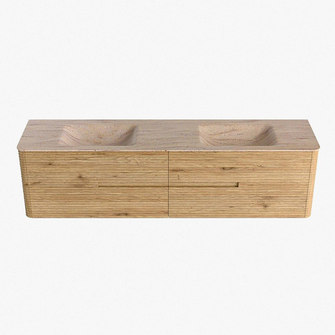 Mondiaz CIRO-DLUX Badkamermeubelset - 190x45x50cm - Solid surface wastafel Saba - 2 wasbak Dubbel - 2 kraangaten - 4 lades - Oak