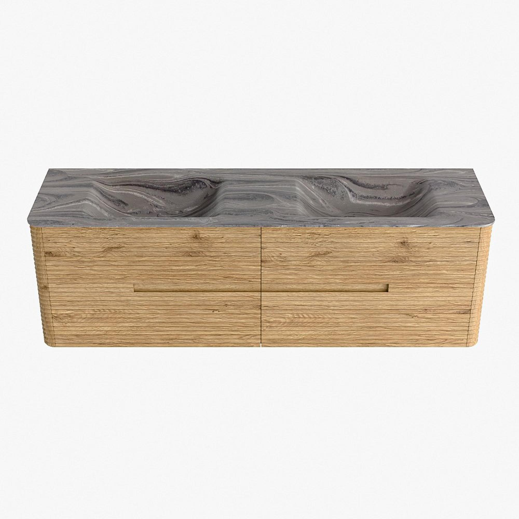 Mondiaz CIRO-DLUX Badkamermeubelset - 160x45x50cm - Solid surface wastafel Sombra - 2 wasbak Dubbel - 2 kraangaten - 4 lades - Oak