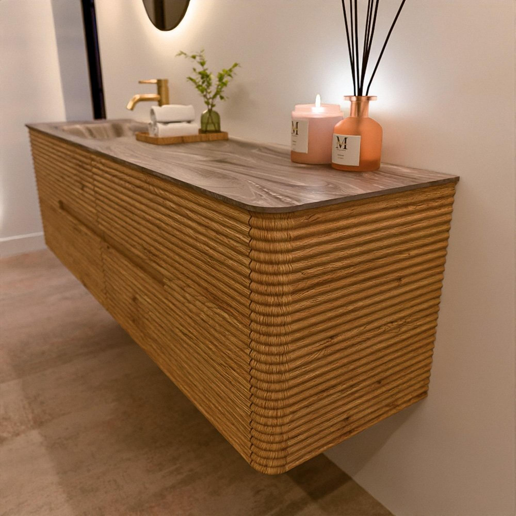 Het CIRO-DLUX badkamermeubel is ontwikkeld voor wie kiest voor modern design, natuurlijke materialen en hoogwaardige functionaliteit. Met maatvoeringen van 70 cm tot 190 cm past de CIRO-serie moeiteloos in zowel compacte badkamers als royale designruimtes. Elk meubel is een uitgebalanceerde combinatie van esthetiek, ambacht en duurzame kwaliteit.