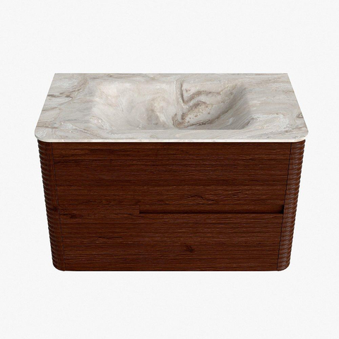 Mondiaz CIRO-DLUX Badkamermeubelset - 80x45x50cm - Solid surface wastafel Frappe - 1 wasbak Midden - 1 kraangat - 2 lades - Ruby