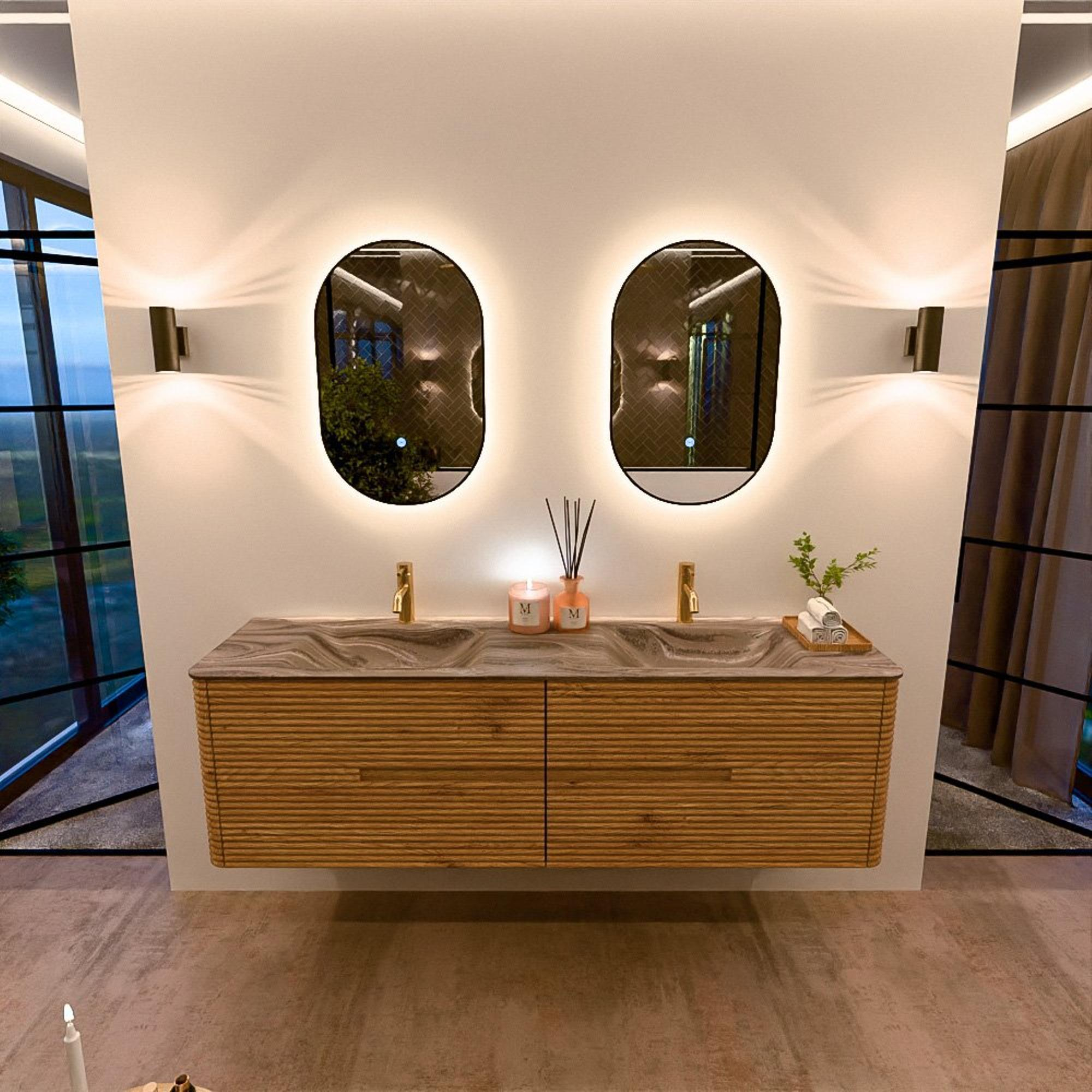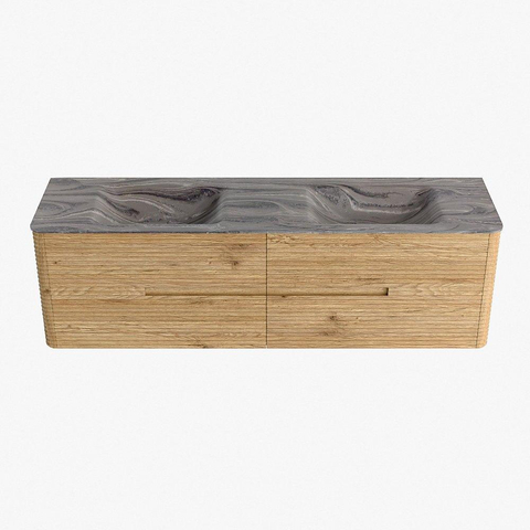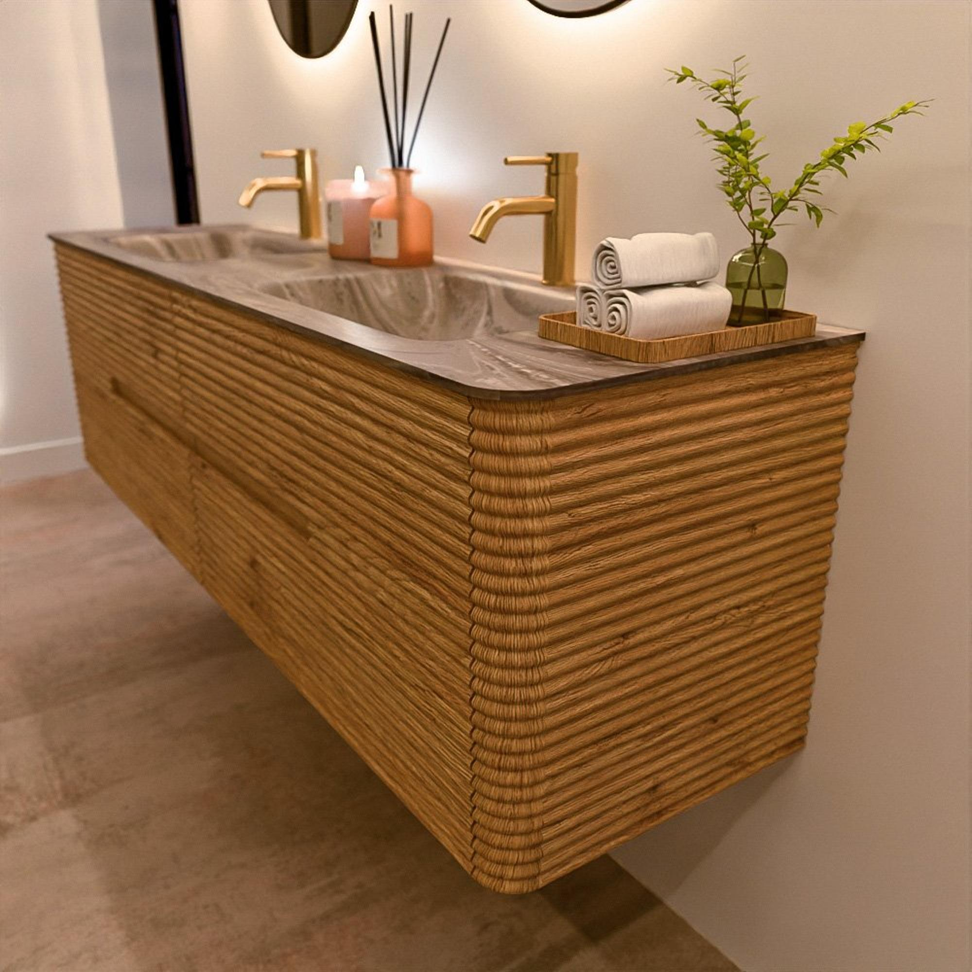 Mondiaz CIRO-DLUX Badkamermeubelset - 170x45x50cm - Solid surface wastafel Sombra - 2 wasbak Dubbel - 2 kraangaten - 4 lades - Oak