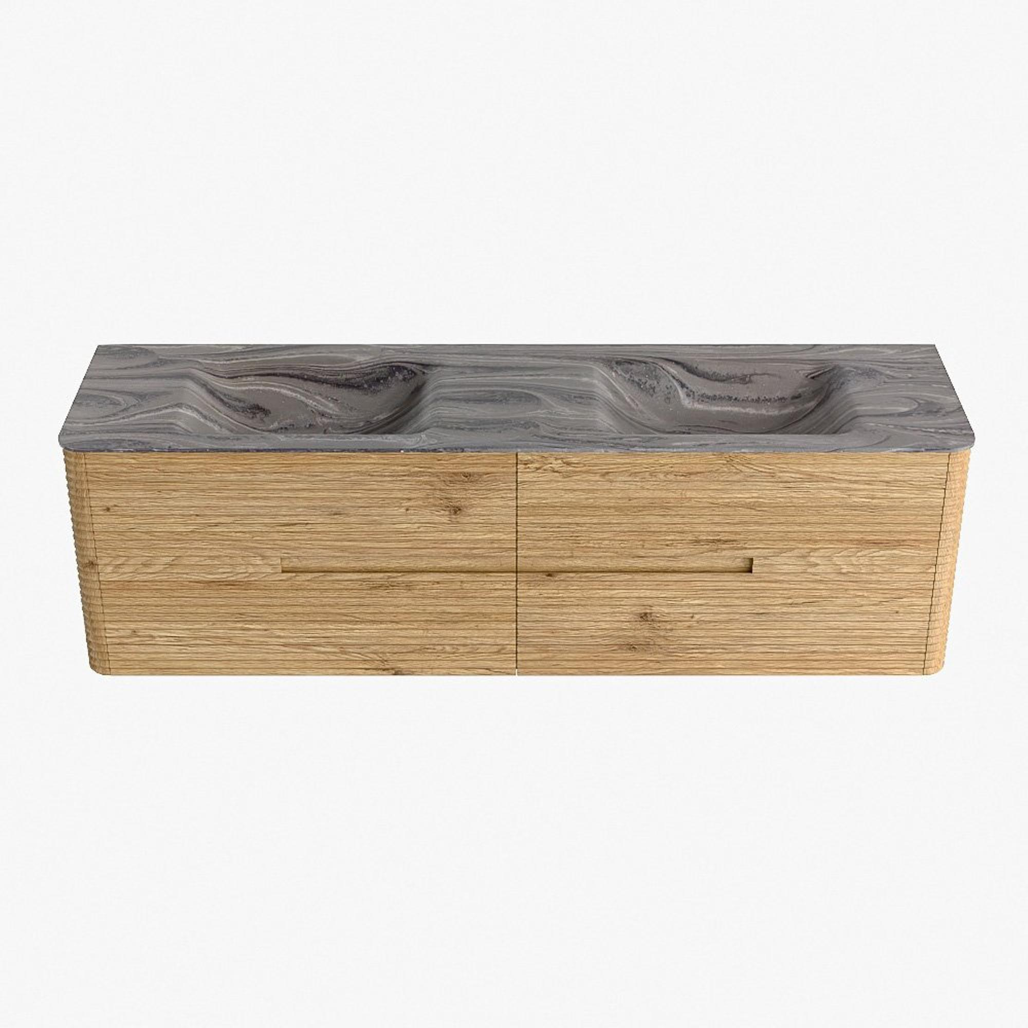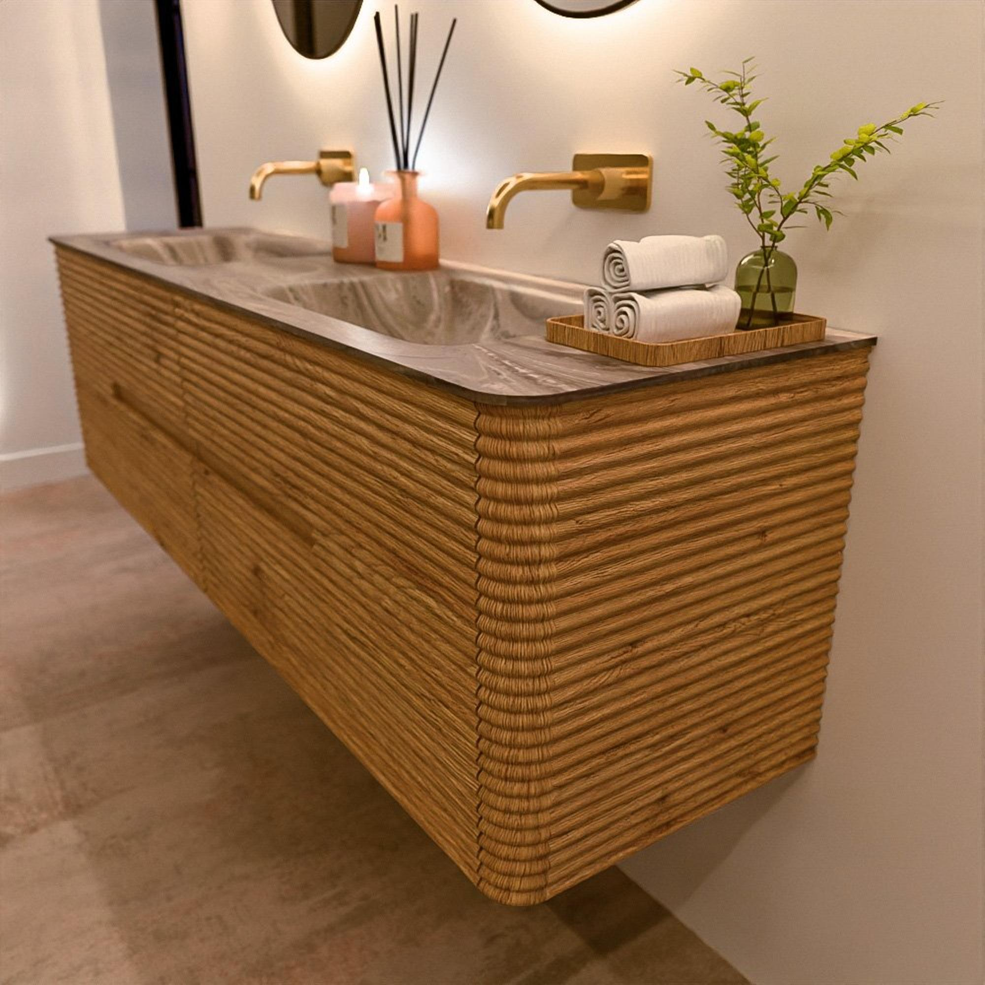 Mondiaz CIRO-DLUX Badkamermeubelset - 170x45x50cm - Solid surface wastafel Sombra - 2 wasbak Dubbel - zonder kraangaten - 4 lades - Oak