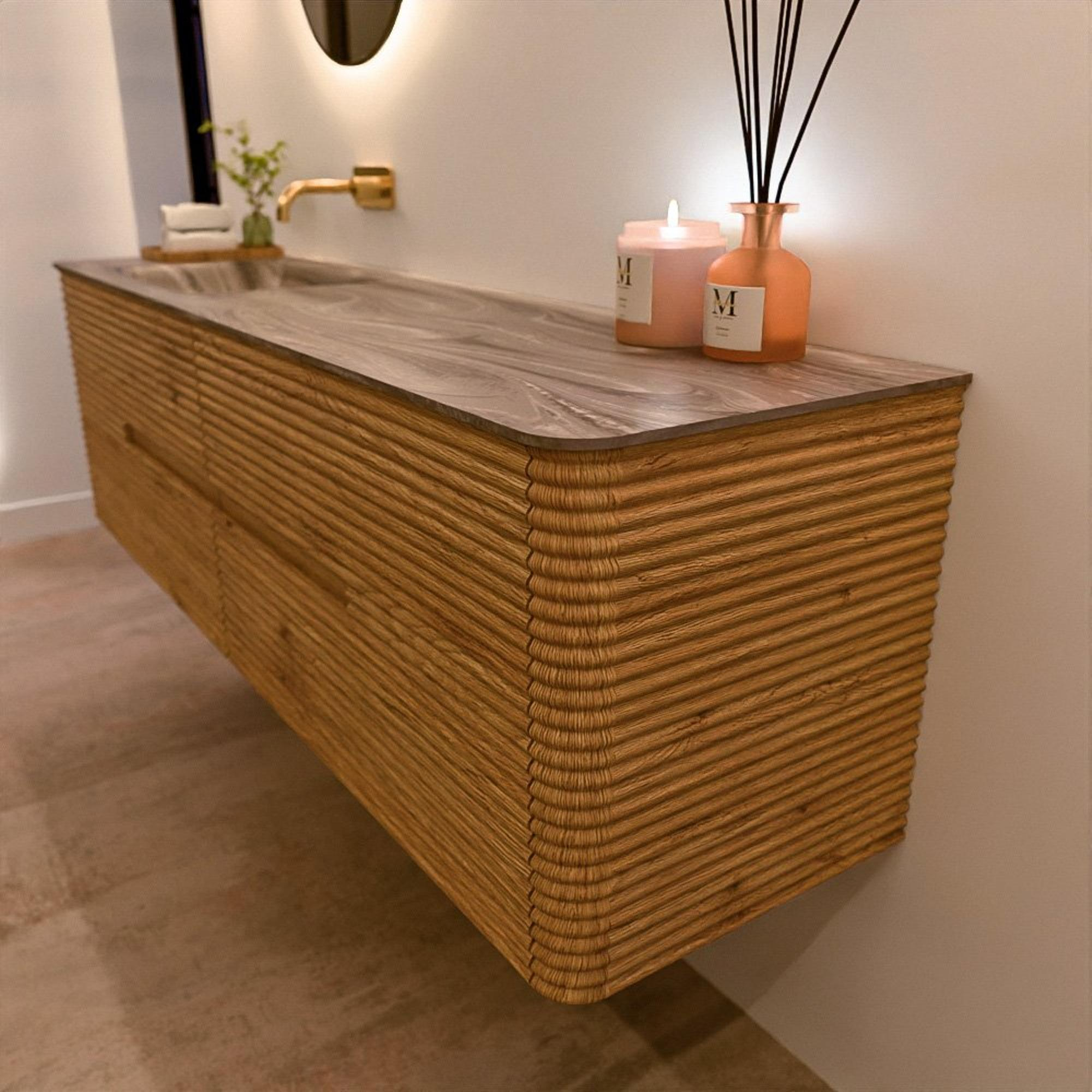 Het CIRO-DLUX badkamermeubel is ontwikkeld voor wie kiest voor modern design, natuurlijke materialen en hoogwaardige functionaliteit. Met maatvoeringen van 70 cm tot 190 cm past de CIRO-serie moeiteloos in zowel compacte badkamers als royale designruimtes. Elk meubel is een uitgebalanceerde combinatie van esthetiek, ambacht en duurzame kwaliteit.