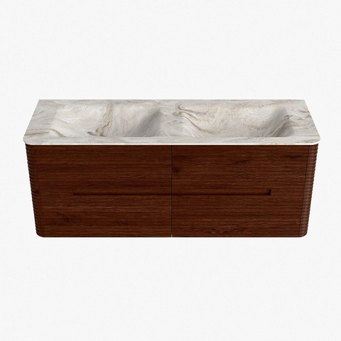 Mondiaz CIRO-DLUX Badkamermeubelset - 130x45x50cm - Solid surface wastafel Frappe - 2 wasbak Dubbel - 2 kraangaten - 4 lades - Ruby