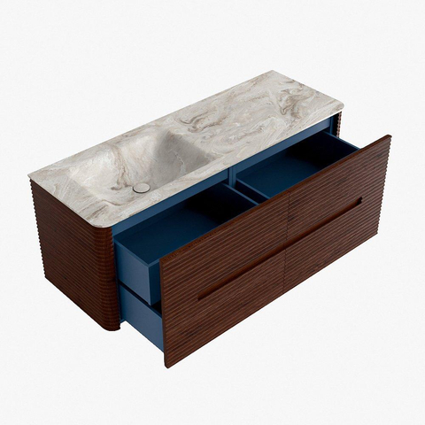Functioneel gemak is een essentieel onderdeel van de CIRO-serie. Het meubel beschikt over een royale lade met extra binnen lade, ideaal voor het overzichtelijk opbergen van alle dagelijkse badkamerartikelen. Dankzij de geïntegreerde greep en het soft close-mechanisme blijft het front rustig, strak en elegant.