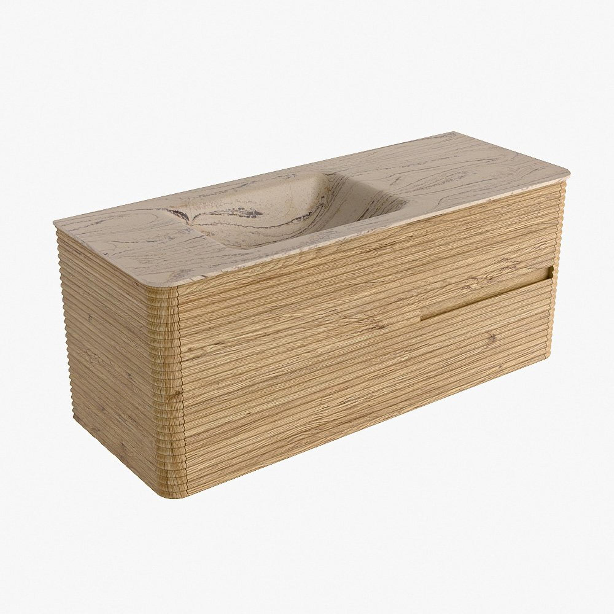 Mondiaz CIRO-DLUX Badkamermeubelset - 120x45x50cm - Solid surface wastafel Arena - 1 wasbak Links - zonder kraangaten - 2 lades - Oak