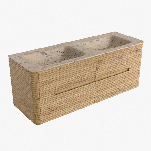 Mondiaz CIRO-DLUX Badkamermeubelset - 130x45x50cm - Solid surface wastafel Arena - 2 wasbak Dubbel - 2 kraangaten - 4 lades - Oak