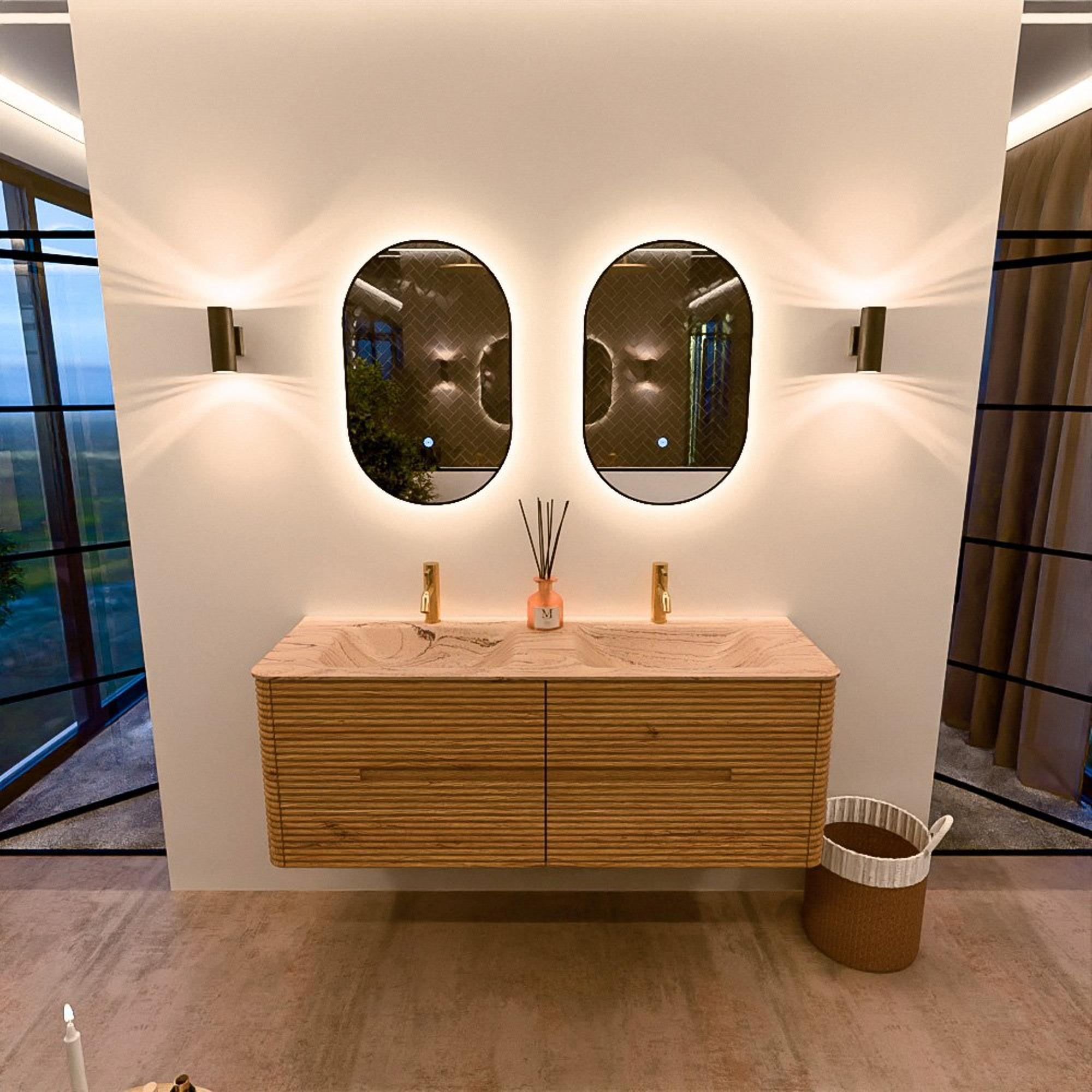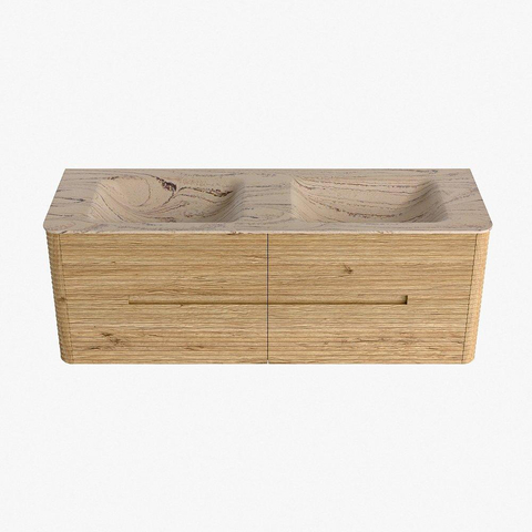 Mondiaz CIRO-DLUX Badkamermeubelset - 140x45x50cm - Solid surface wastafel Arena - 2 wasbak Dubbel - 2 kraangaten - 4 lades - Oak