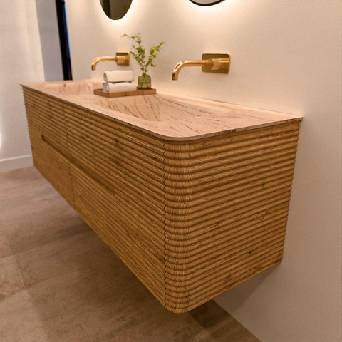 Mondiaz CIRO-DLUX Badkamermeubelset - 160x45x50cm - Solid surface wastafel Arena - 2 wasbak Dubbel - zonder kraangaten - 4 lades - Oak