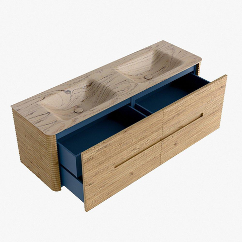 Mondiaz CIRO-DLUX Badkamermeubelset - 150x45x50cm - Solid surface wastafel Arena - 2 wasbak Dubbel - 2 kraangaten - 4 lades - Oak