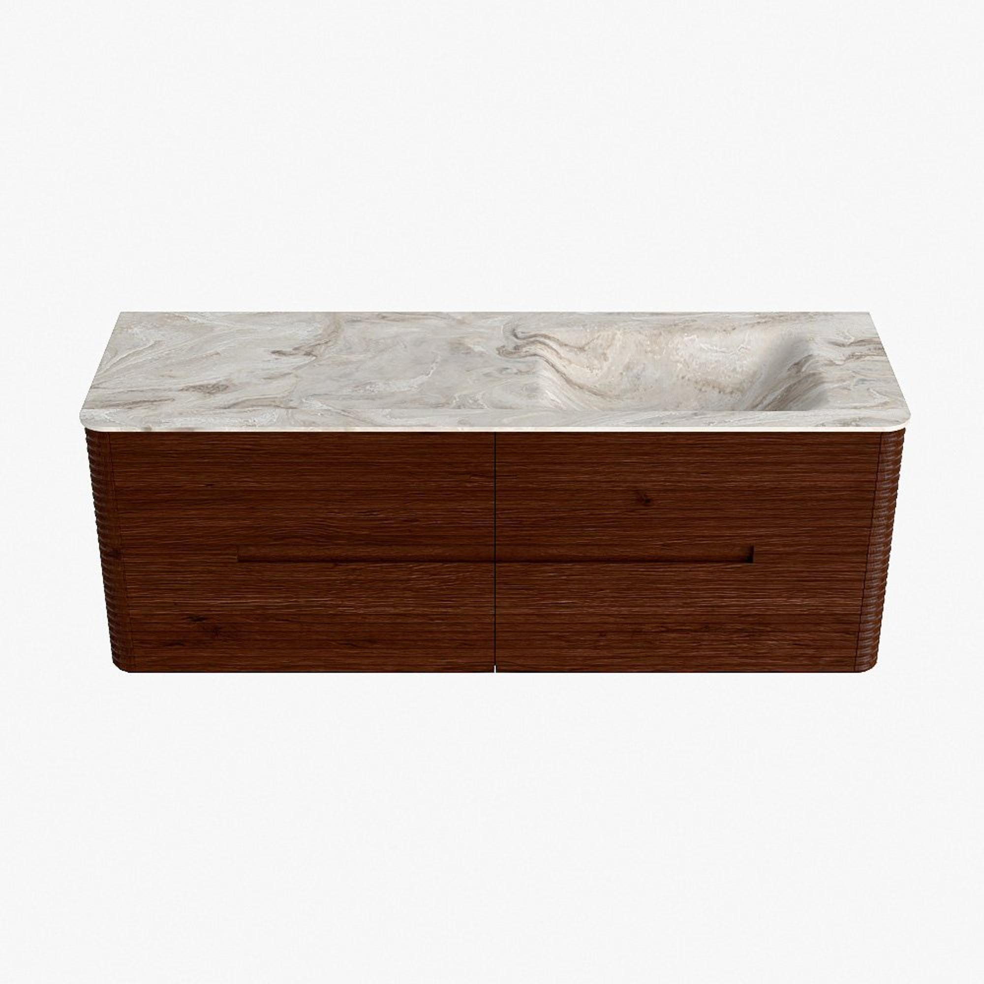 Mondiaz CIRO-DLUX Badkamermeubelset - 140x45x50cm - Solid surface wastafel Frappe - 1 wasbak Rechts - 1 kraangat - 4 lades - Ruby