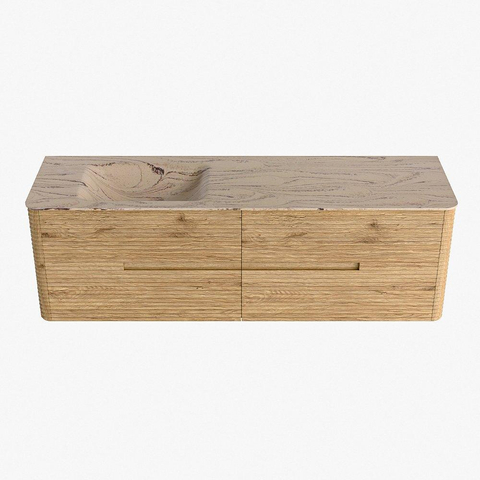 Mondiaz CIRO-DLUX Badkamermeubelset - 160x45x50cm - Solid surface wastafel Arena - 1 wasbak Links - 1 kraangat - 4 lades - Oak