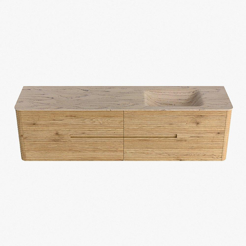 Mondiaz CIRO-DLUX Badkamermeubelset - 180x45x50cm - Solid surface wastafel Arena - 1 wasbak Rechts - 1 kraangat - 4 lades - Oak