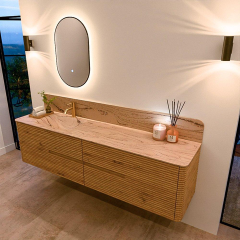 Mondiaz CIRO-DLUX Badkamermeubelset - 190x45x50cm - Solid surface wastafel Arena - 1 wasbak Links - 1 kraangat - 4 lades - Oak