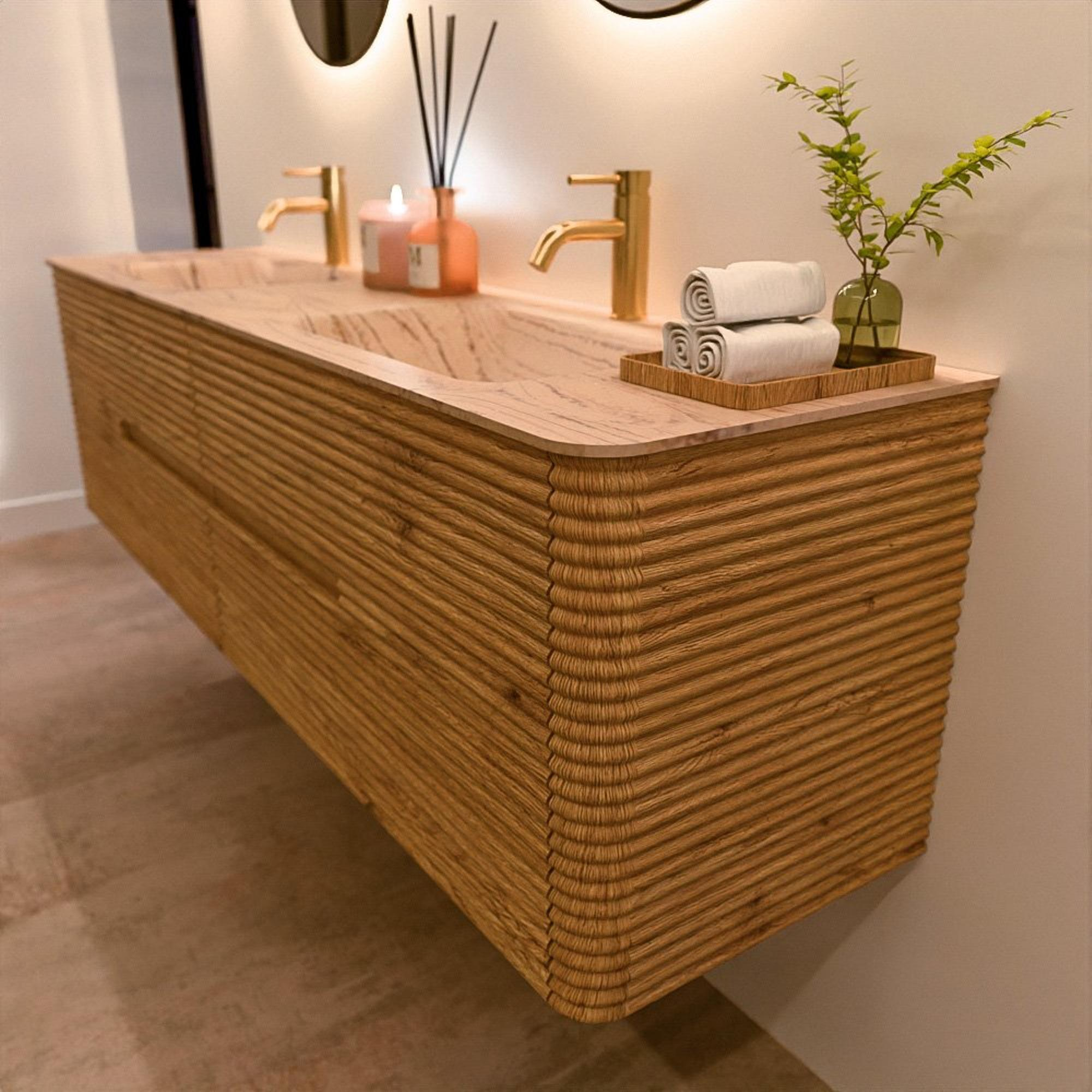 Het CIRO-DLUX badkamermeubel is ontwikkeld voor wie kiest voor modern design, natuurlijke materialen en hoogwaardige functionaliteit. Met maatvoeringen van 70 cm tot 190 cm past de CIRO-serie moeiteloos in zowel compacte badkamers als royale designruimtes. Elk meubel is een uitgebalanceerde combinatie van esthetiek, ambacht en duurzame kwaliteit.