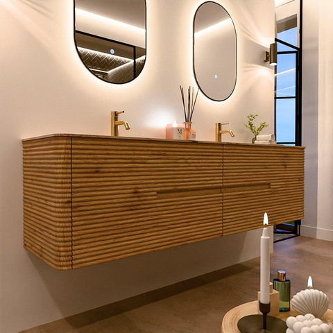Mondiaz CIRO-DLUX Badkamermeubelset - 180x45x50cm - Solid surface wastafel Arena - 2 wasbak Dubbel - 2 kraangaten - 4 lades - Oak