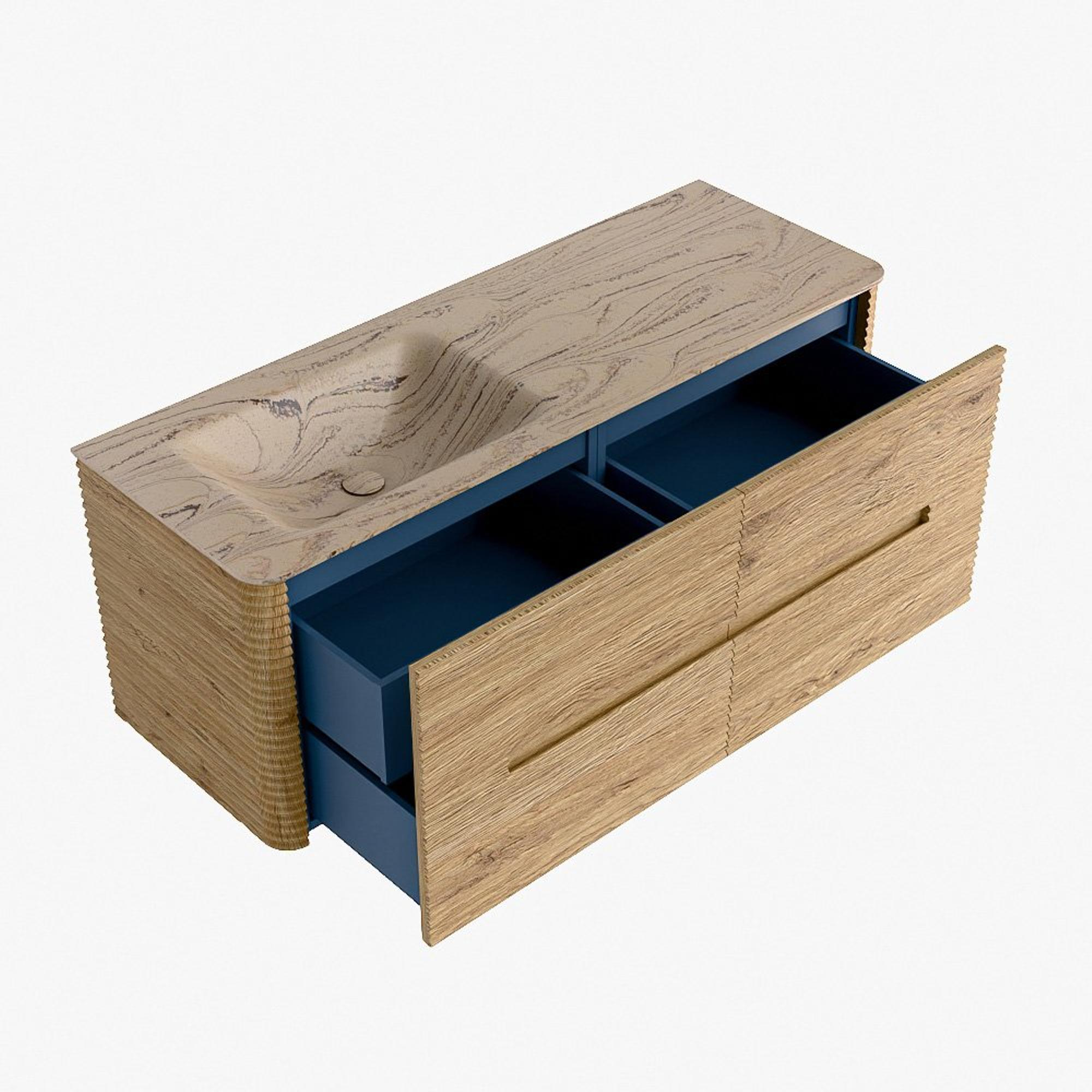Mondiaz CIRO-DLUX Badkamermeubelset - 130x45x50cm - Solid surface wastafel Arena - 1 wasbak Links - 1 kraangat - 4 lades - Oak