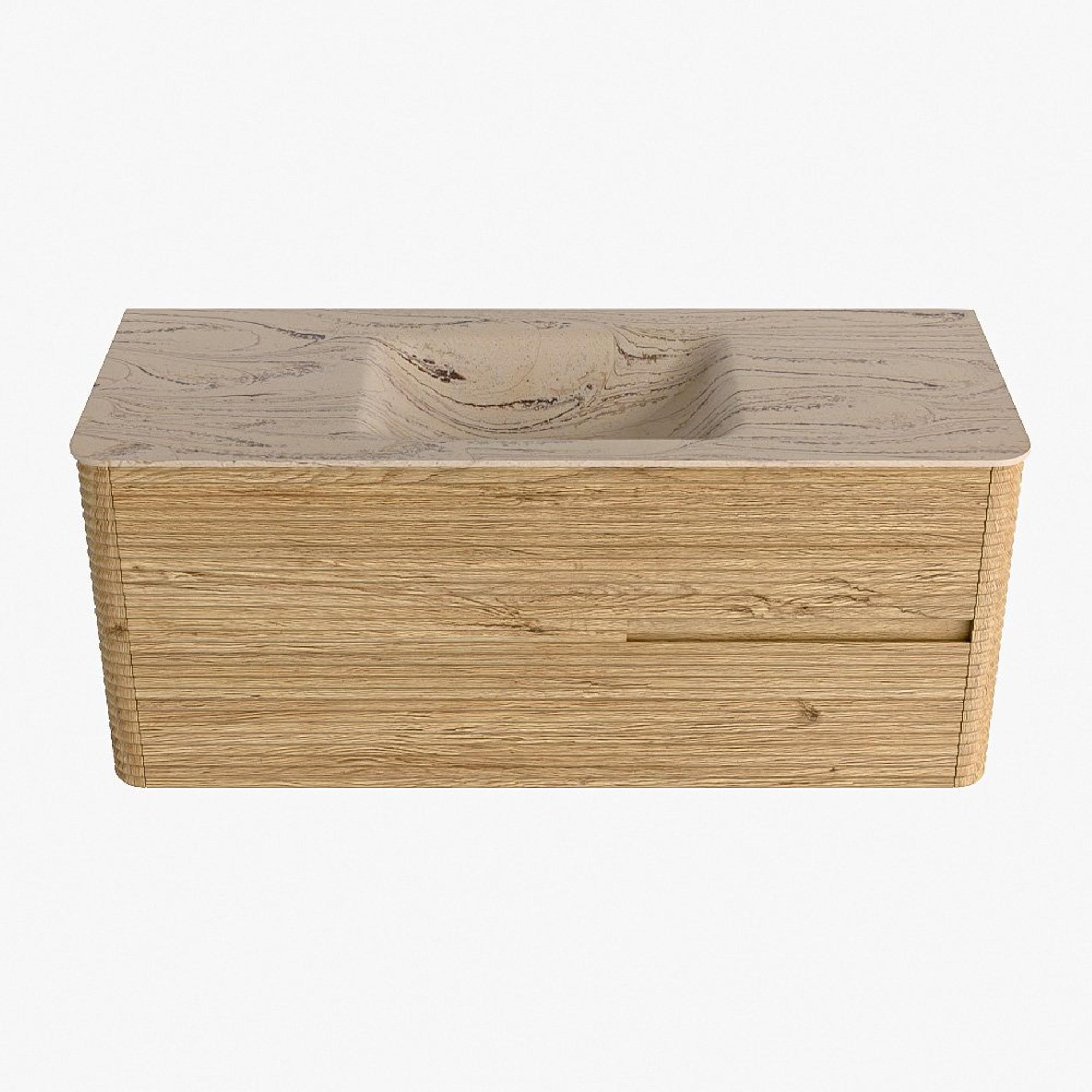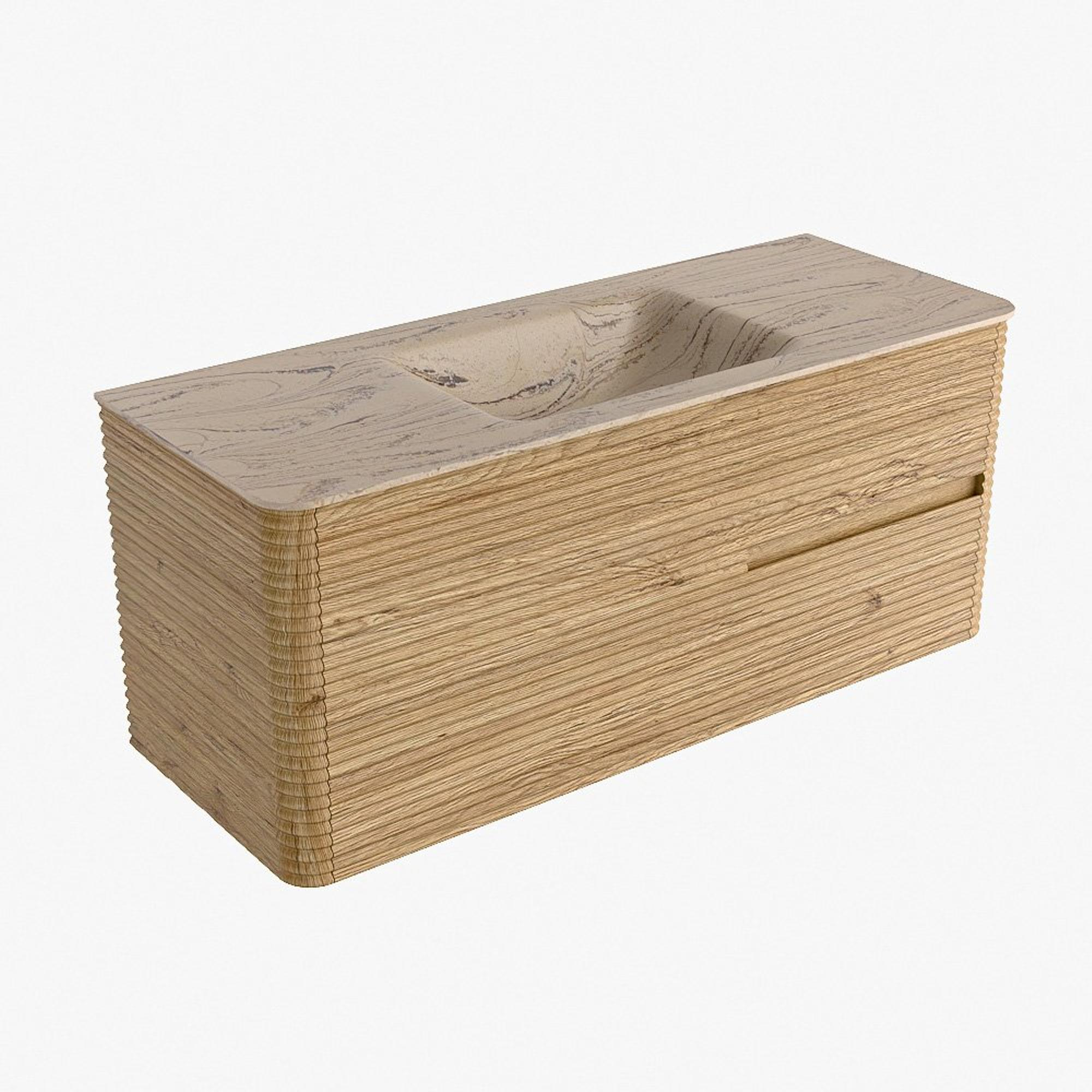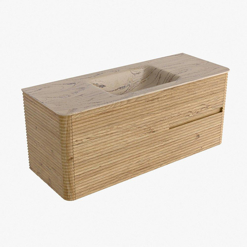 Mondiaz CIRO-DLUX Badkamermeubelset - 120x45x50cm - Solid surface wastafel Arena - 1 wasbak Midden - zonder kraangaten - 2 lades - Oak