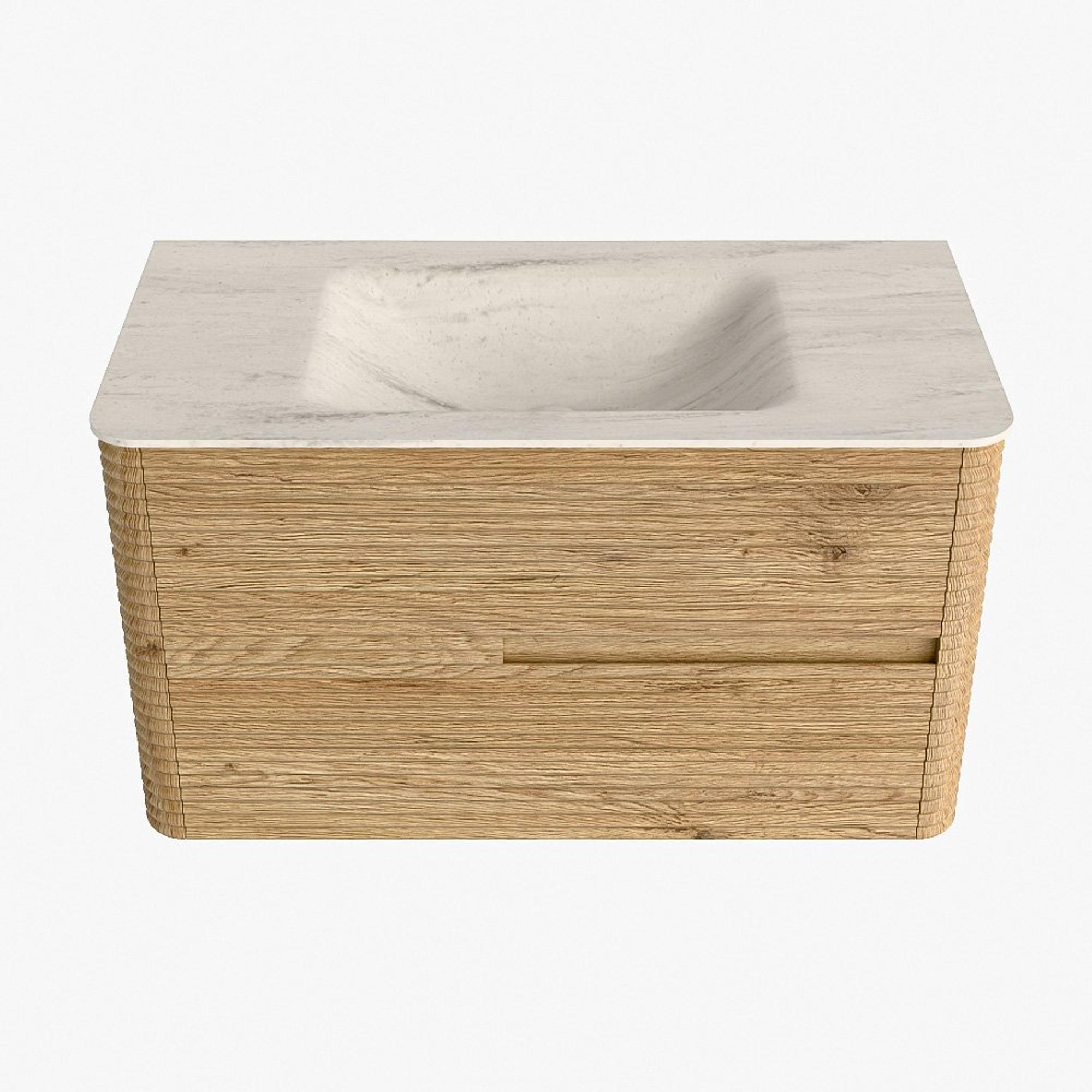 Mondiaz CIRO-DLUX Badkamermeubelset - 90x45x50cm - Solid surface wastafel Meli - 1 wasbak Midden - 1 kraangat - 2 lades - Oak