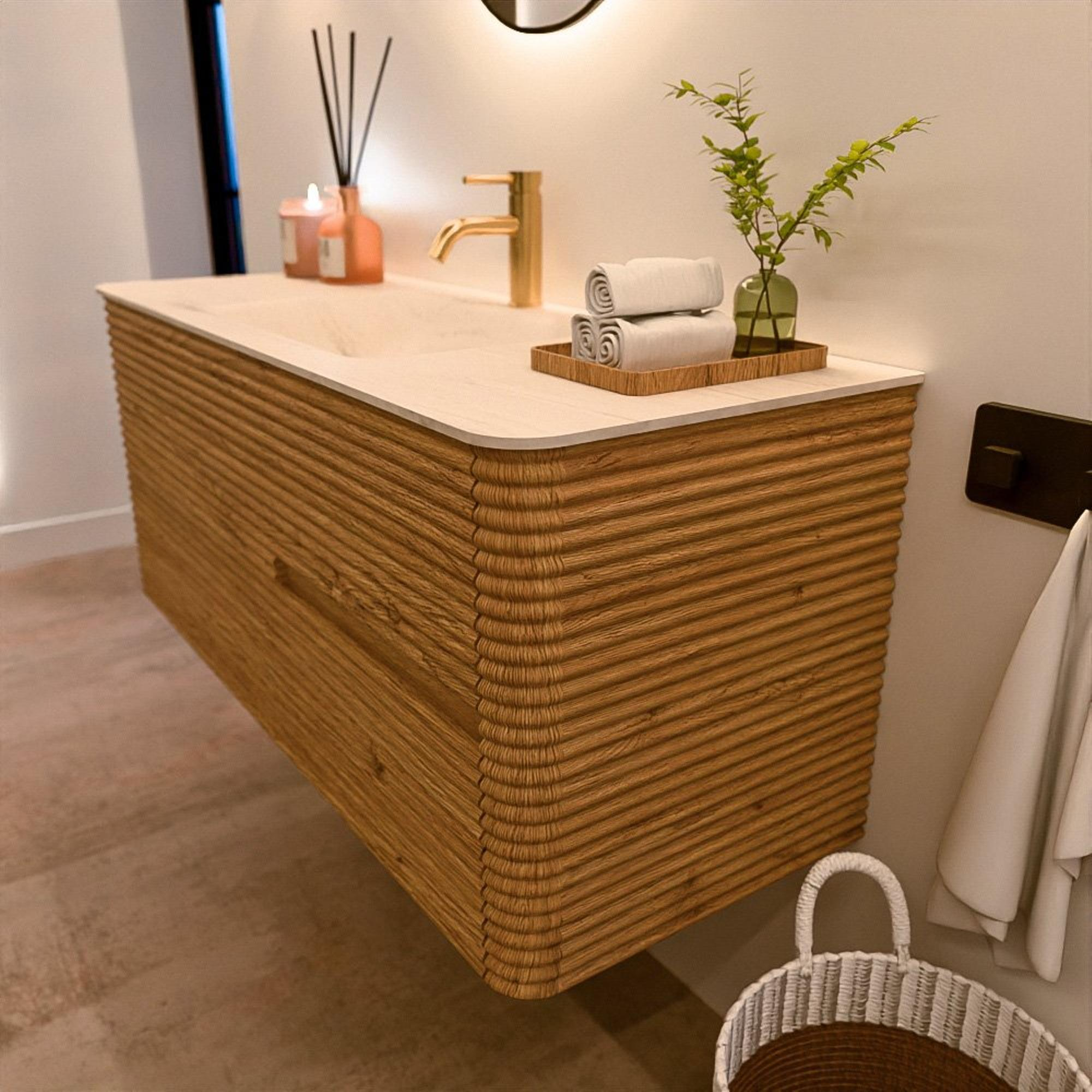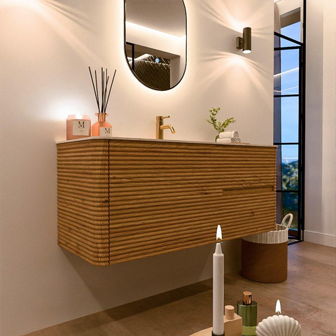 Mondiaz CIRO-DLUX Badkamermeubelset - 120x45x50cm - Solid surface wastafel Meli - 1 wasbak Midden - 1 kraangat - 2 lades - Oak