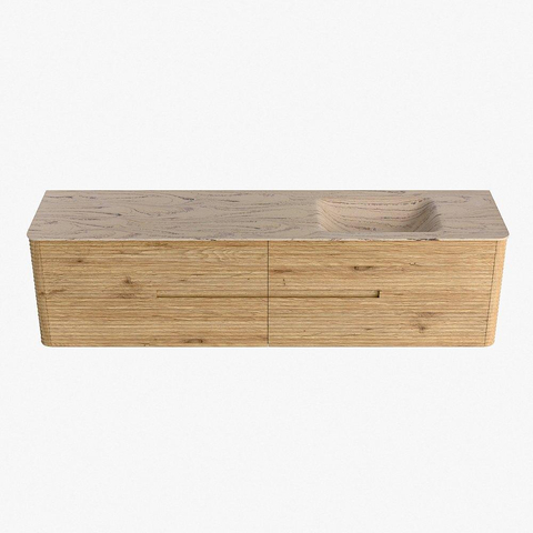 Mondiaz CIRO-DLUX Badkamermeubelset - 190x45x50cm - Solid surface wastafel Arena - 1 wasbak Rechts - 1 kraangat - 4 lades - Oak