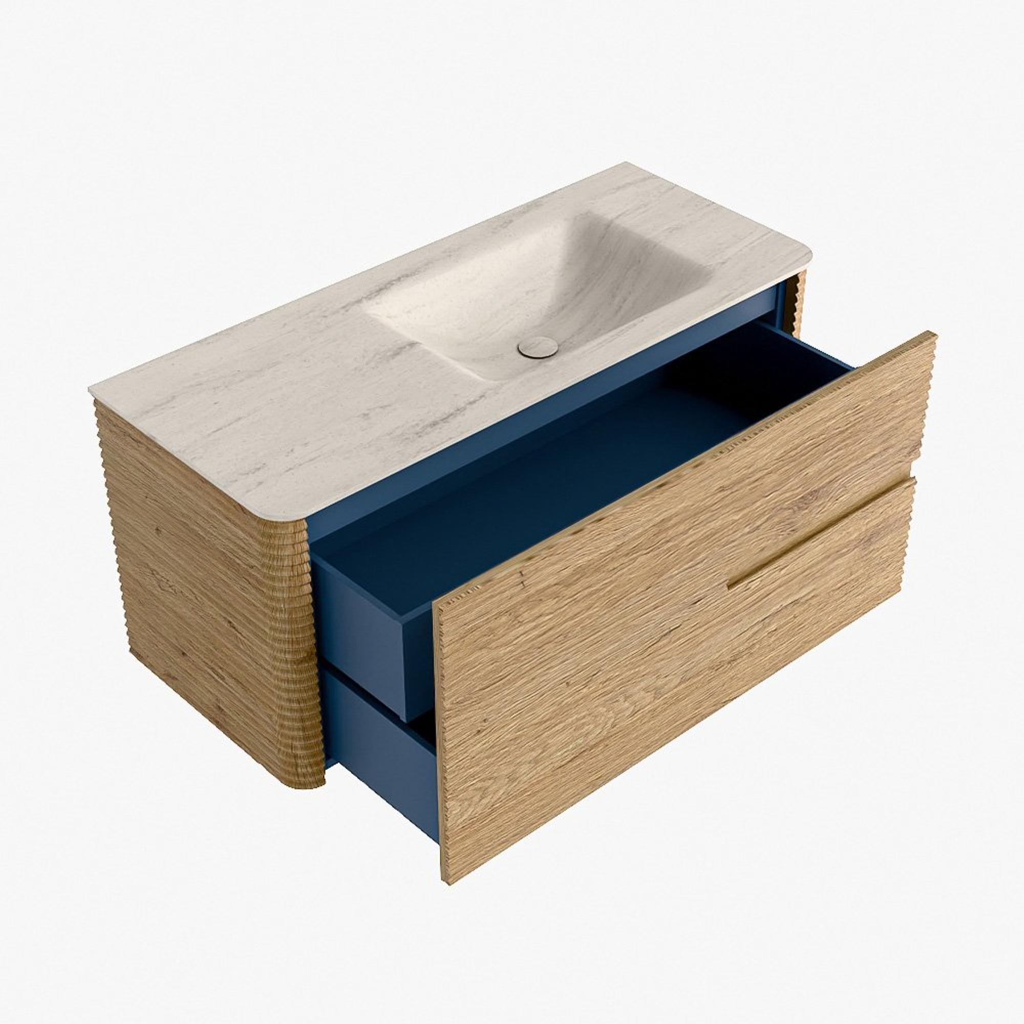 Mondiaz CIRO-DLUX Badkamermeubelset - 110x45x50cm - Solid surface wastafel Meli - 1 wasbak Rechts - zonder kraangaten - 2 lades - Oak