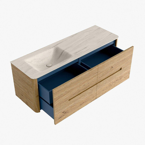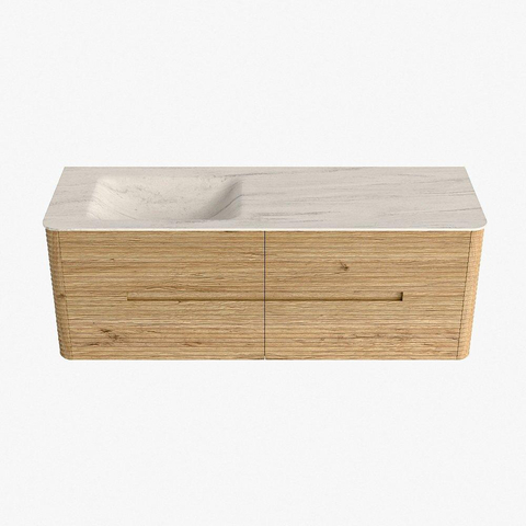 Mondiaz CIRO-DLUX Badkamermeubelset - 140x45x50cm - Solid surface wastafel Meli - 1 wasbak Links - 1 kraangat - 4 lades - Oak