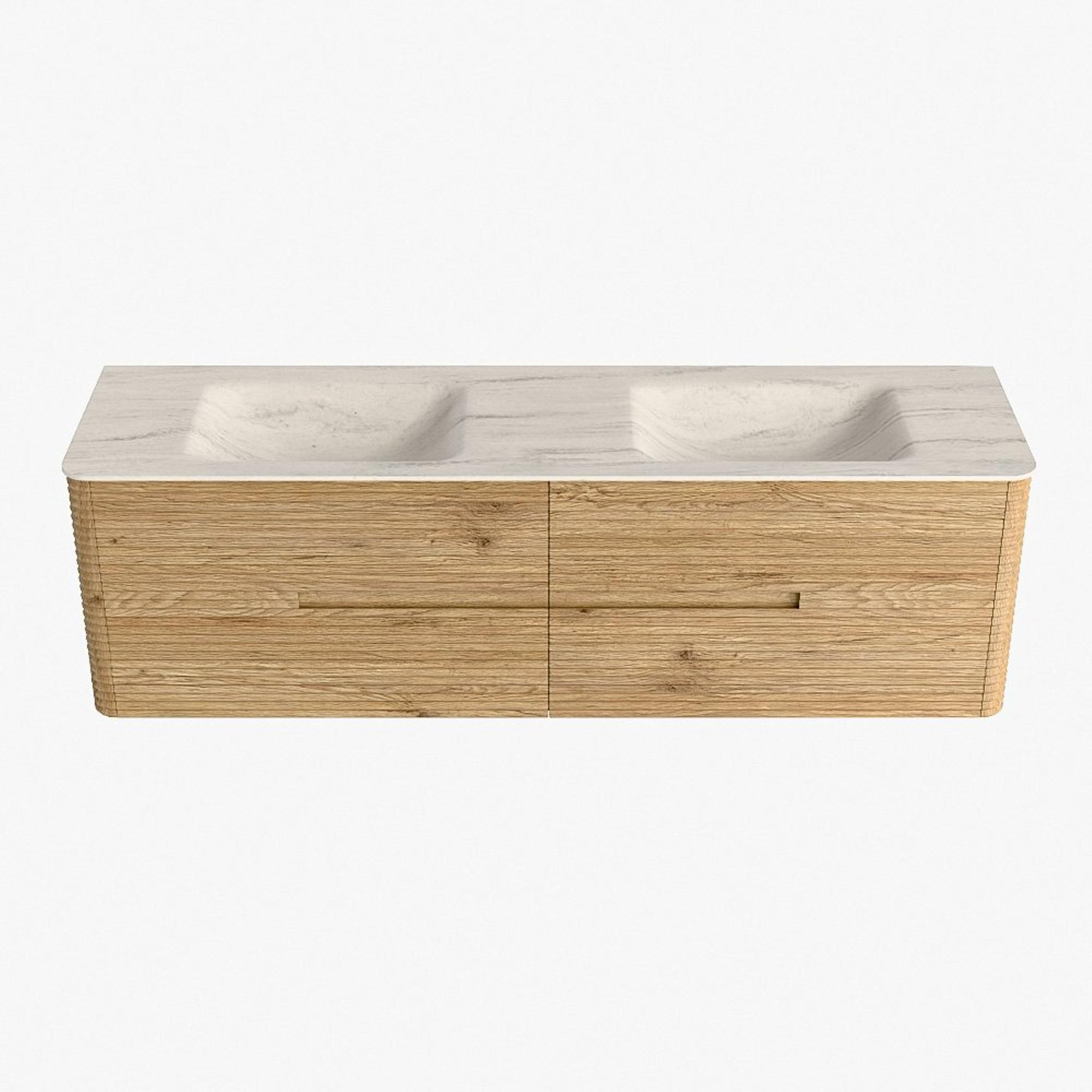 Mondiaz CIRO-DLUX Badkamermeubelset - 170x45x50cm - Solid surface wastafel Meli - 2 wasbak Dubbel - 2 kraangaten - 4 lades - Oak