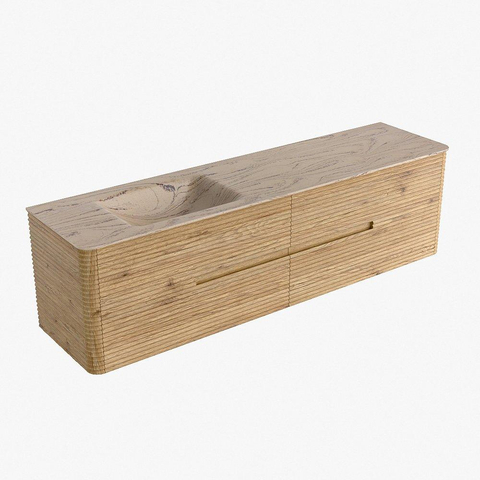 Mondiaz CIRO-DLUX Badkamermeubelset - 180x45x50cm - Solid surface wastafel Arena - 1 wasbak Links - 1 kraangat - 4 lades - Oak