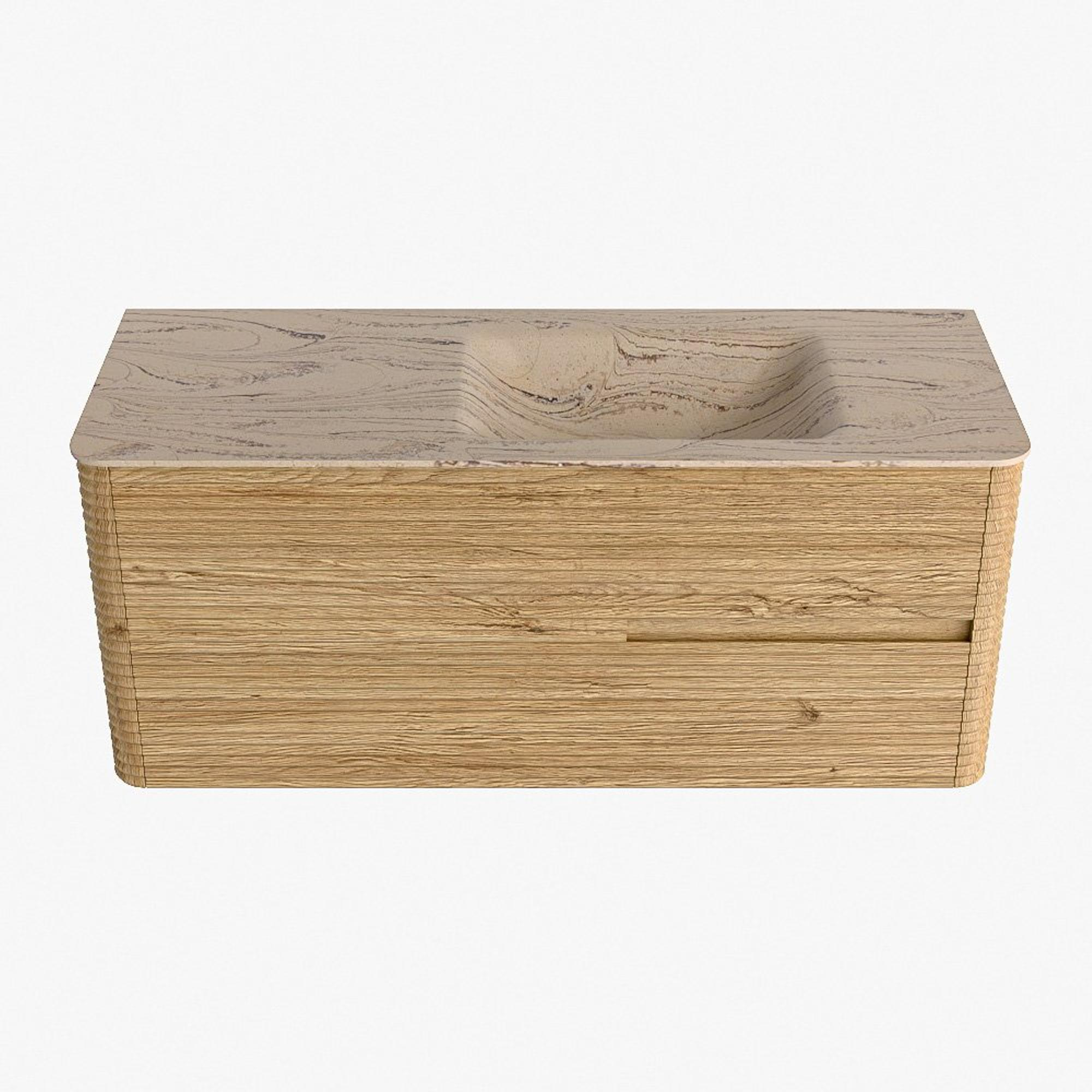 Mondiaz CIRO-DLUX Badkamermeubelset - 120x45x50cm - Solid surface wastafel Arena - 1 wasbak Rechts - zonder kraangaten - 2 lades - Oak