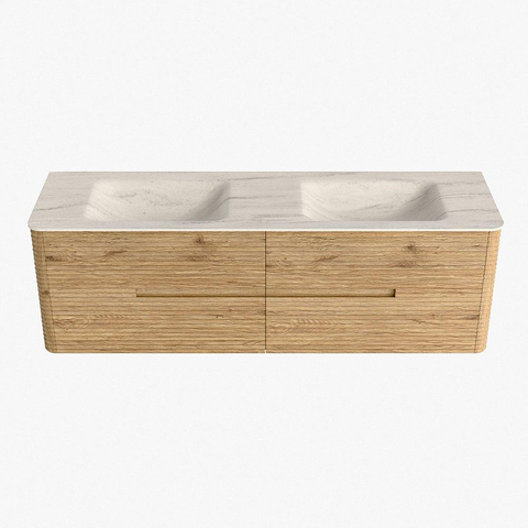 Mondiaz CIRO-DLUX Badkamermeubelset - 160x45x50cm - Solid surface wastafel Meli - 2 wasbak Dubbel - zonder kraangaten - 4 lades - Oak
