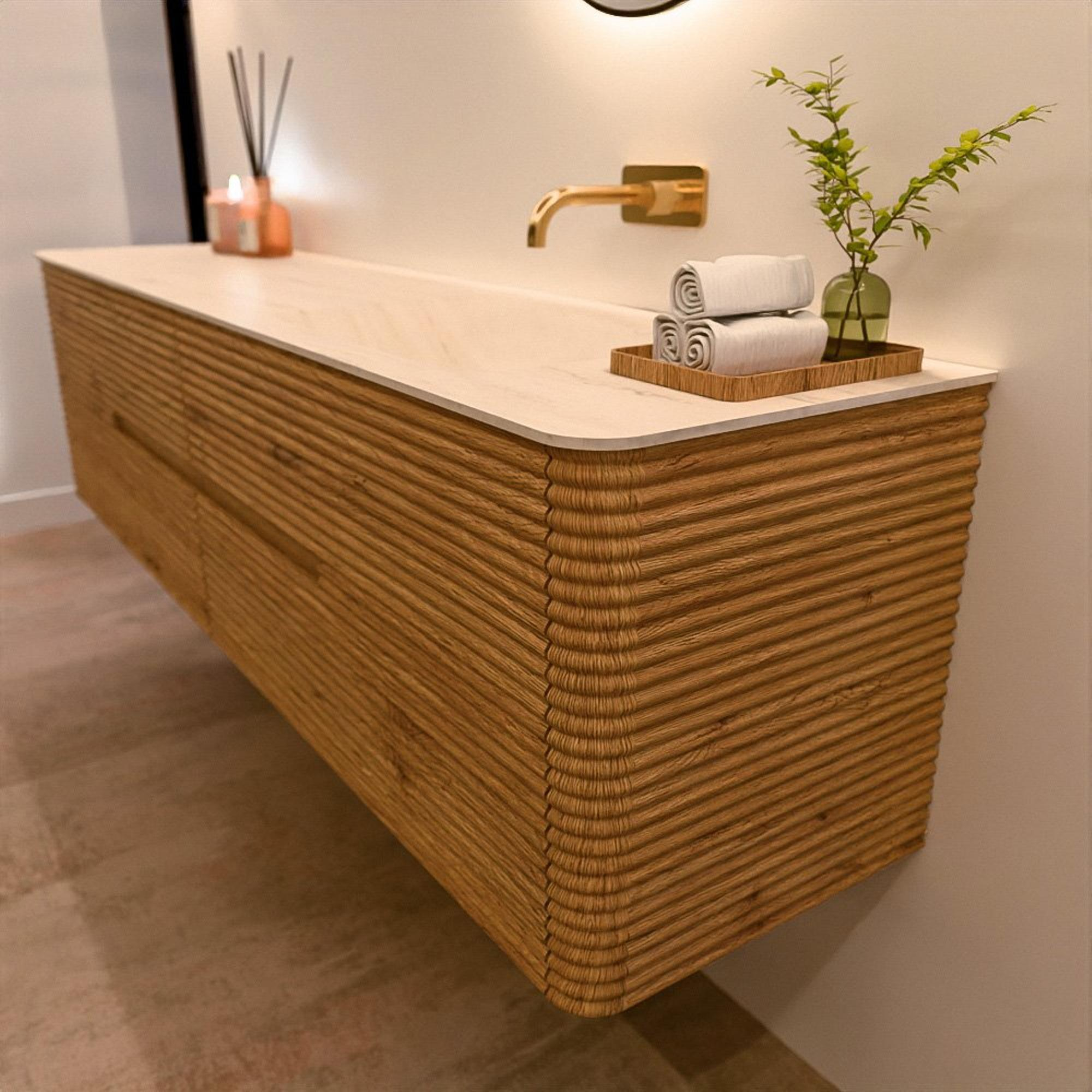 Het CIRO-DLUX badkamermeubel is ontwikkeld voor wie kiest voor modern design, natuurlijke materialen en hoogwaardige functionaliteit. Met maatvoeringen van 70 cm tot 190 cm past de CIRO-serie moeiteloos in zowel compacte badkamers als royale designruimtes. Elk meubel is een uitgebalanceerde combinatie van esthetiek, ambacht en duurzame kwaliteit.