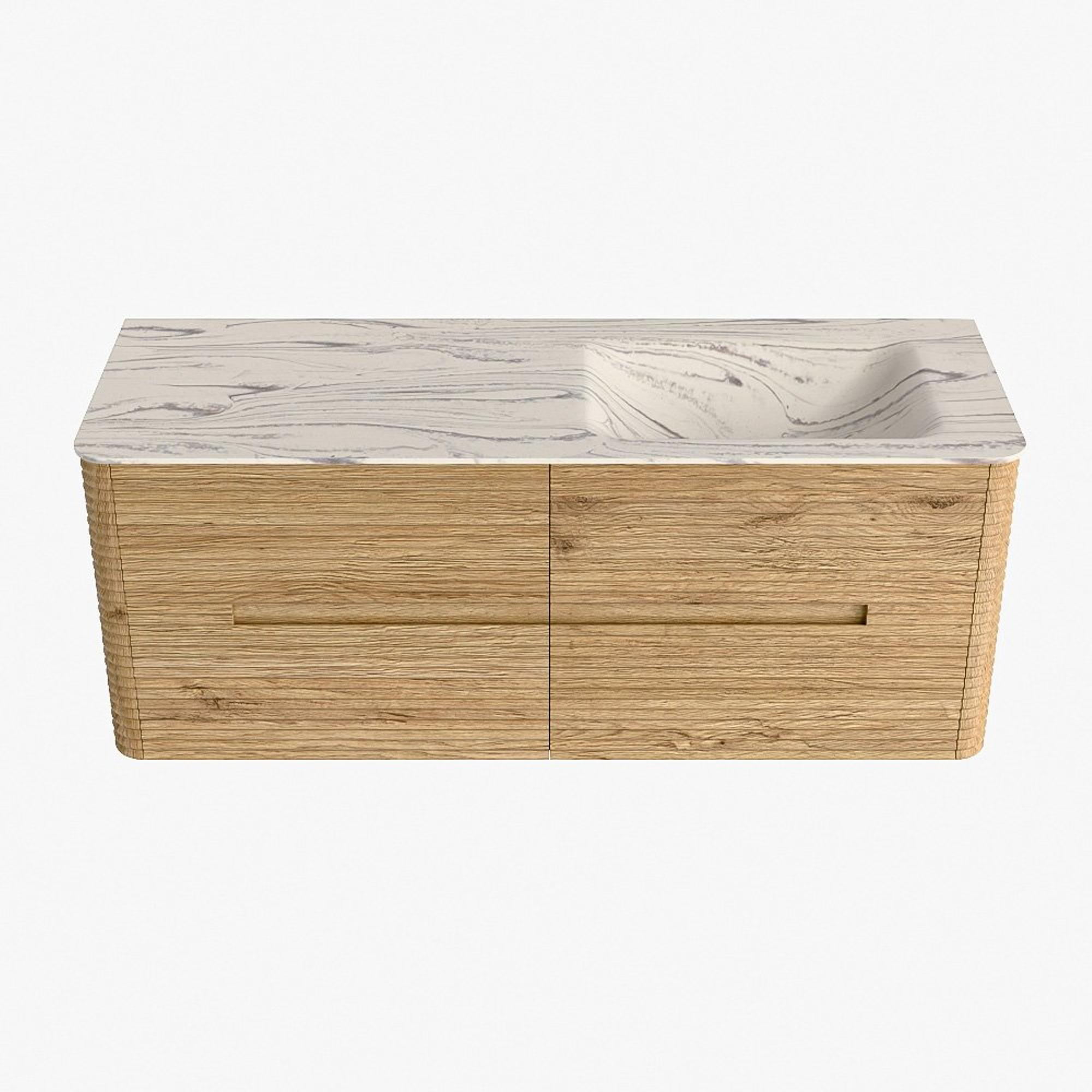 Mondiaz CIRO-DLUX Badkamermeubelset - 130x45x50cm - Solid surface wastafel Nata - 1 wasbak Rechts - zonder kraangaten - 4 lades - Oak