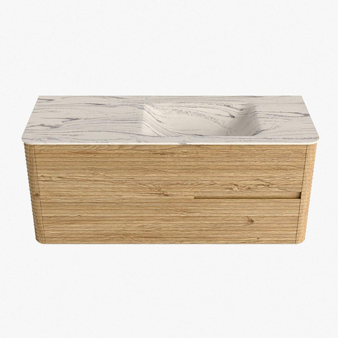 Mondiaz CIRO-DLUX Badkamermeubelset - 120x45x50cm - Solid surface wastafel Nata - 1 wasbak Rechts - zonder kraangaten - 2 lades - Oak