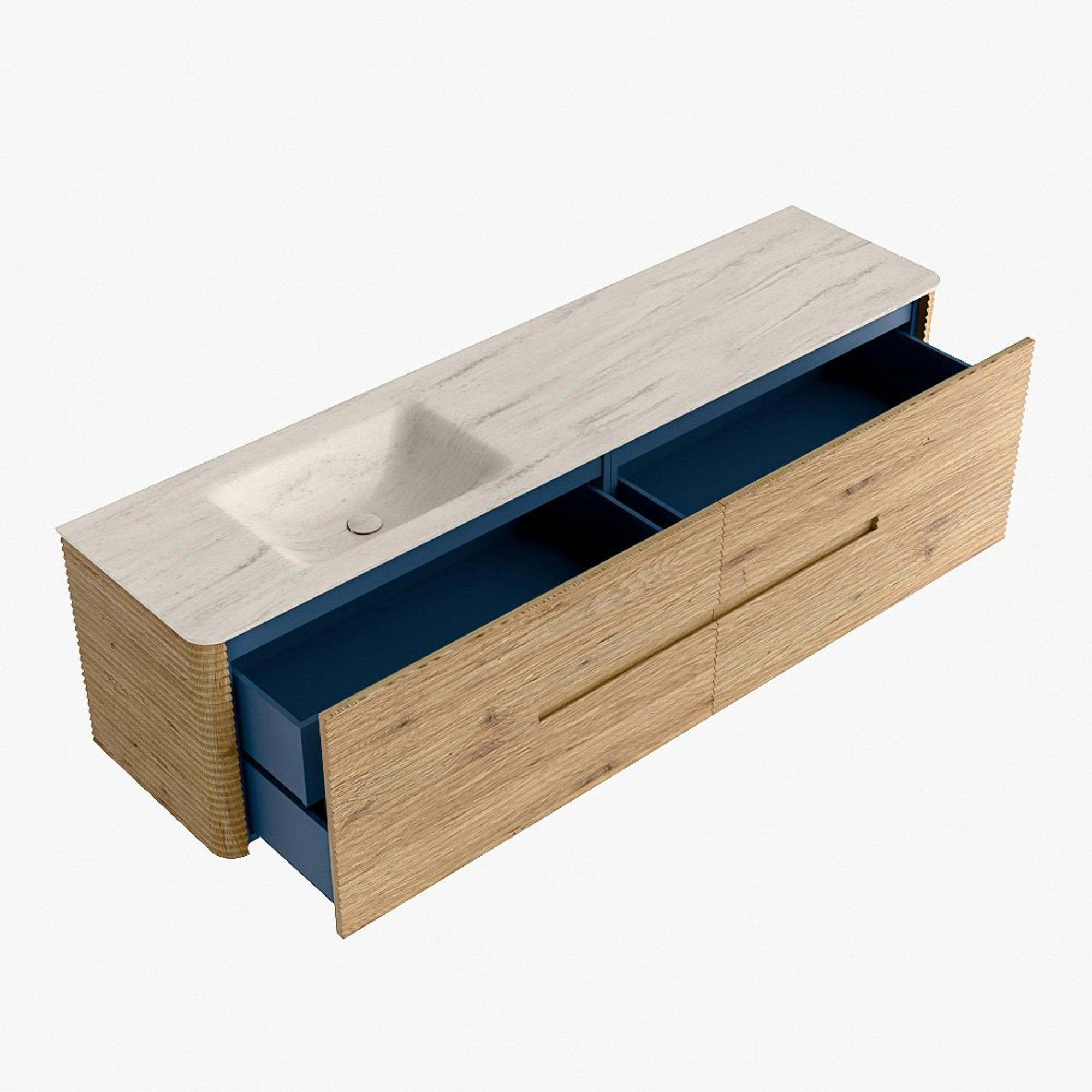Mondiaz CIRO-DLUX Badkamermeubelset - 190x45x50cm - Solid surface wastafel Meli - 1 wasbak Links - zonder kraangaten - 4 lades - Oak