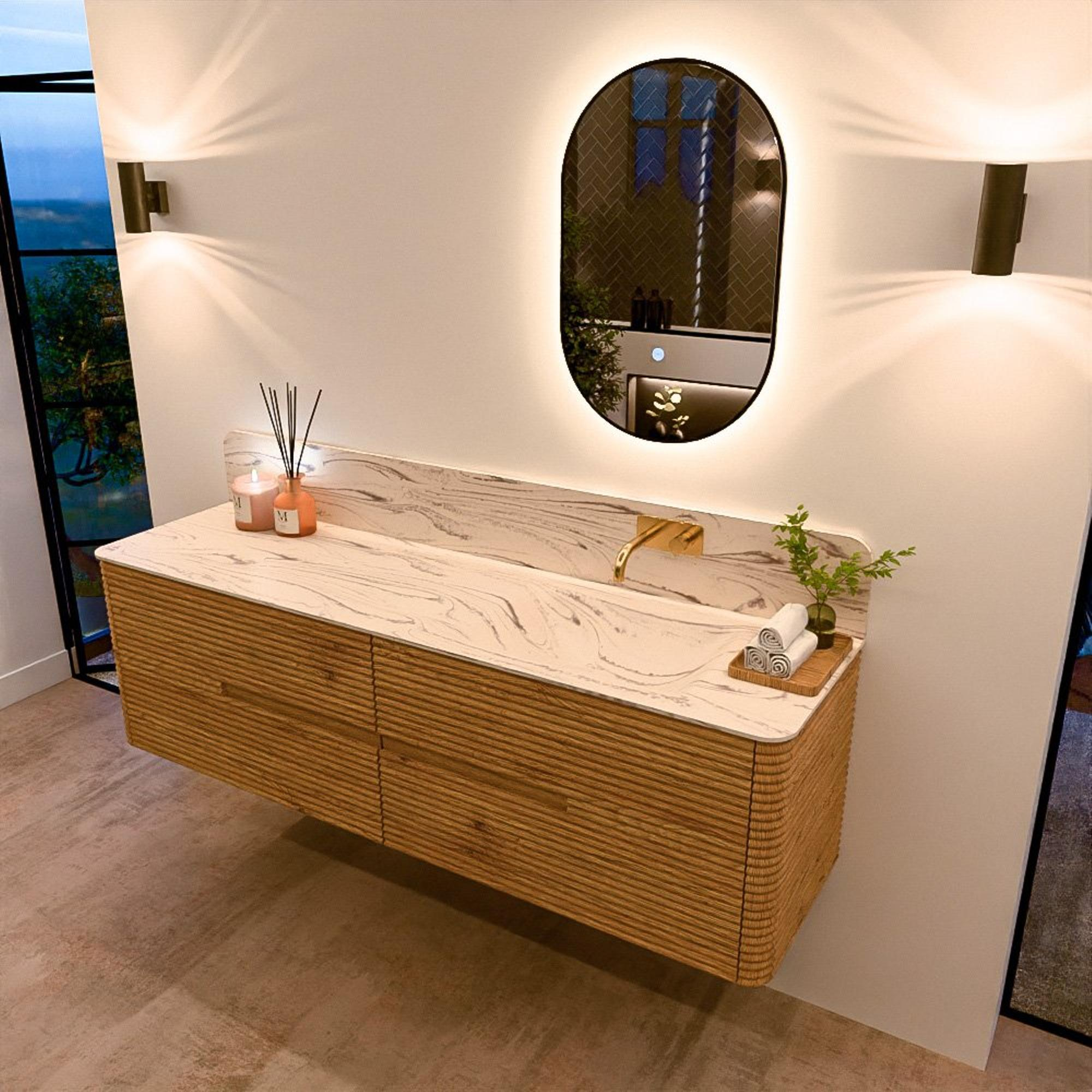 Mondiaz CIRO-DLUX Badkamermeubelset - 170x45x50cm - Solid surface wastafel Nata - 1 wasbak Rechts - zonder kraangaten - 4 lades - Oak
