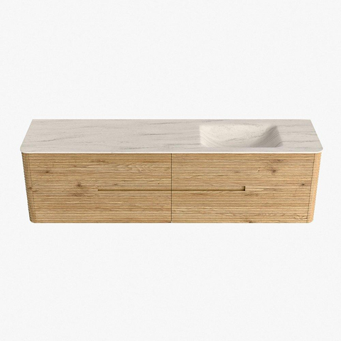 Mondiaz CIRO-DLUX Badkamermeubelset - 180x45x50cm - Solid surface wastafel Meli - 1 wasbak Rechts - 1 kraangat - 4 lades - Oak