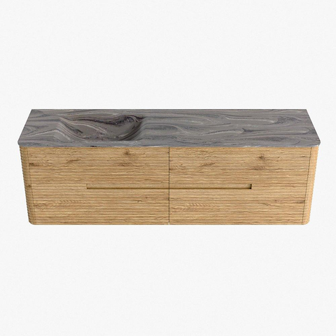 Mondiaz CIRO-DLUX Badkamermeubelset - 160x45x50cm - Solid surface wastafel Sombra - 1 wasbak Links - 1 kraangat - 4 lades - Oak