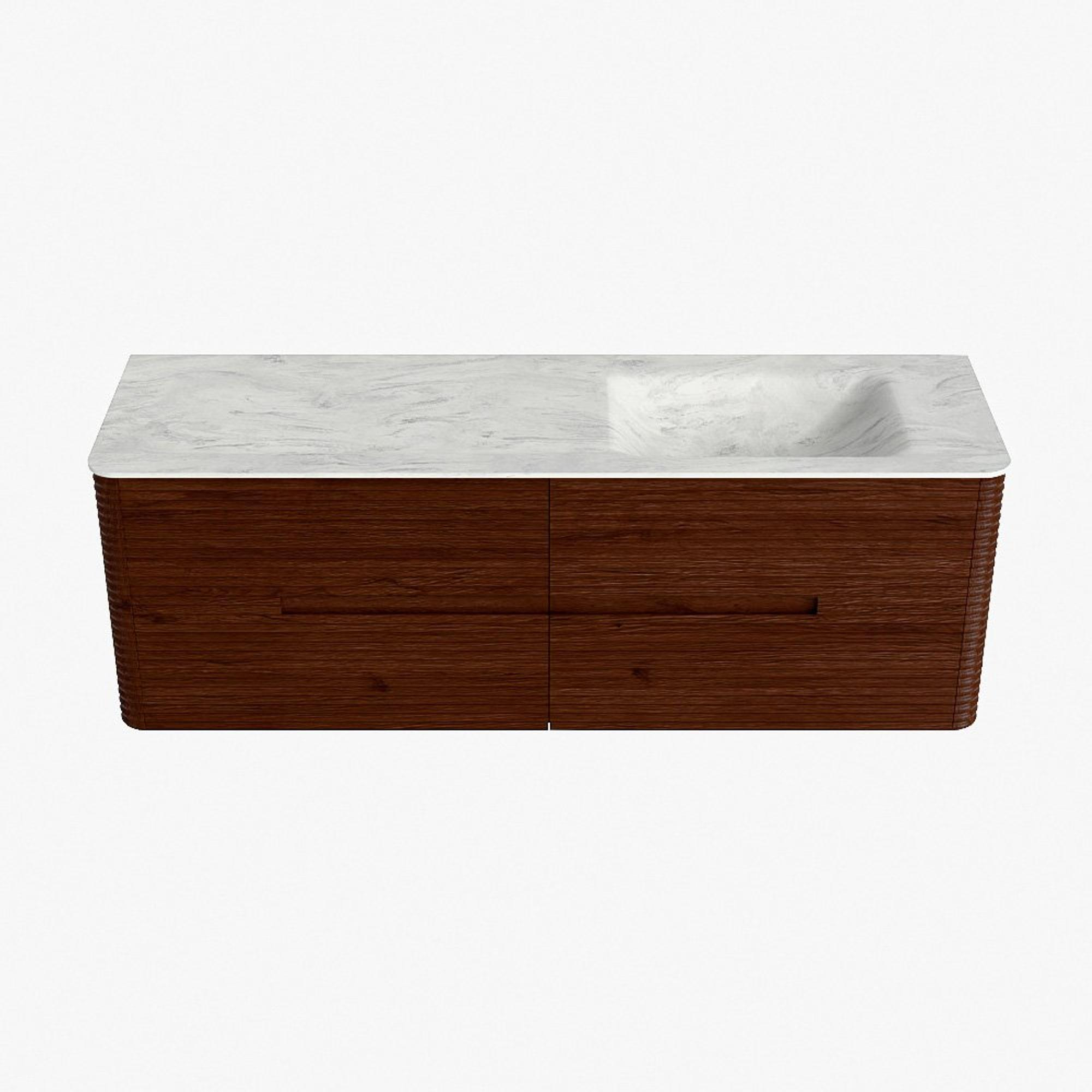 Mondiaz CIRO-DLUX Badkamermeubelset - 150x45x50cm - Solid surface wastafel Opalo - 1 wasbak Rechts - zonder kraangaten - 4 lades - Ruby