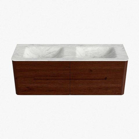 Mondiaz CIRO-DLUX Badkamermeubelset - 140x45x50cm - Solid surface wastafel Opalo - 2 wasbak Dubbel - zonder kraangaten - 4 lades - Ruby
