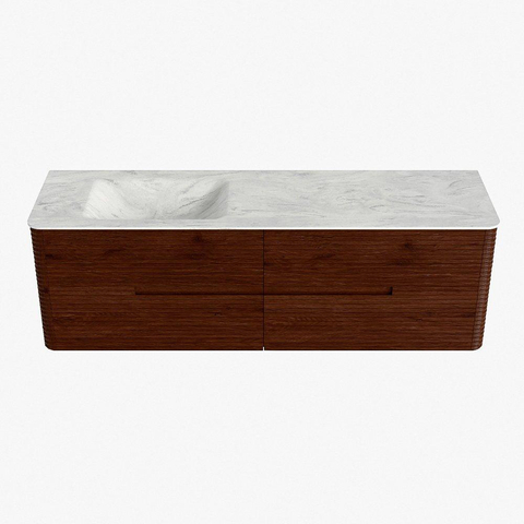 Mondiaz CIRO-DLUX Badkamermeubelset - 160x45x50cm - Solid surface wastafel Opalo - 1 wasbak Links - 1 kraangat - 4 lades - Ruby