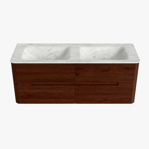 Mondiaz CIRO-DLUX Badkamermeubelset - 130x45x50cm - Solid surface wastafel Opalo - 2 wasbak Dubbel - zonder kraangaten - 4 lades - Ruby